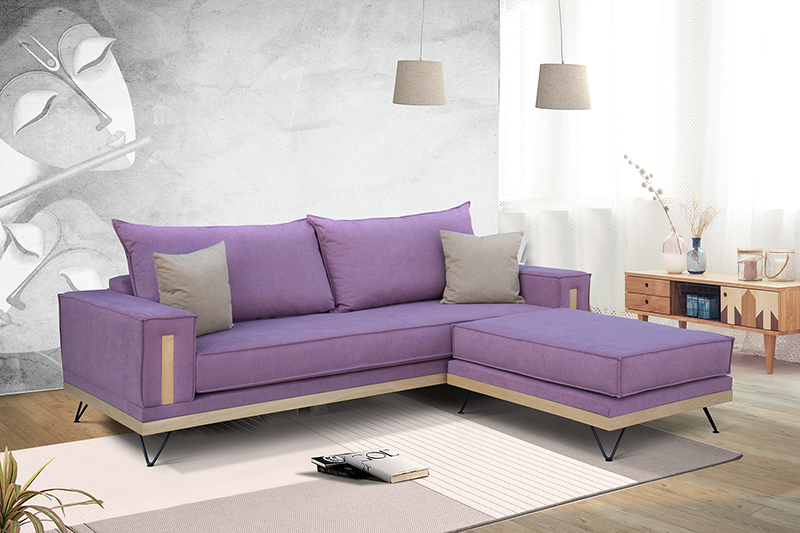 Σύστημα καναπέ αποτελούμενο από ένα καναπέ 3 θέσεων και ένα σκαμπό. Δυνατότητα αντιστοφής της γωνίας από δεξιά στα αριστερά και αντίστροφα, με μια απλή μετακίνηση του σκαμπού.