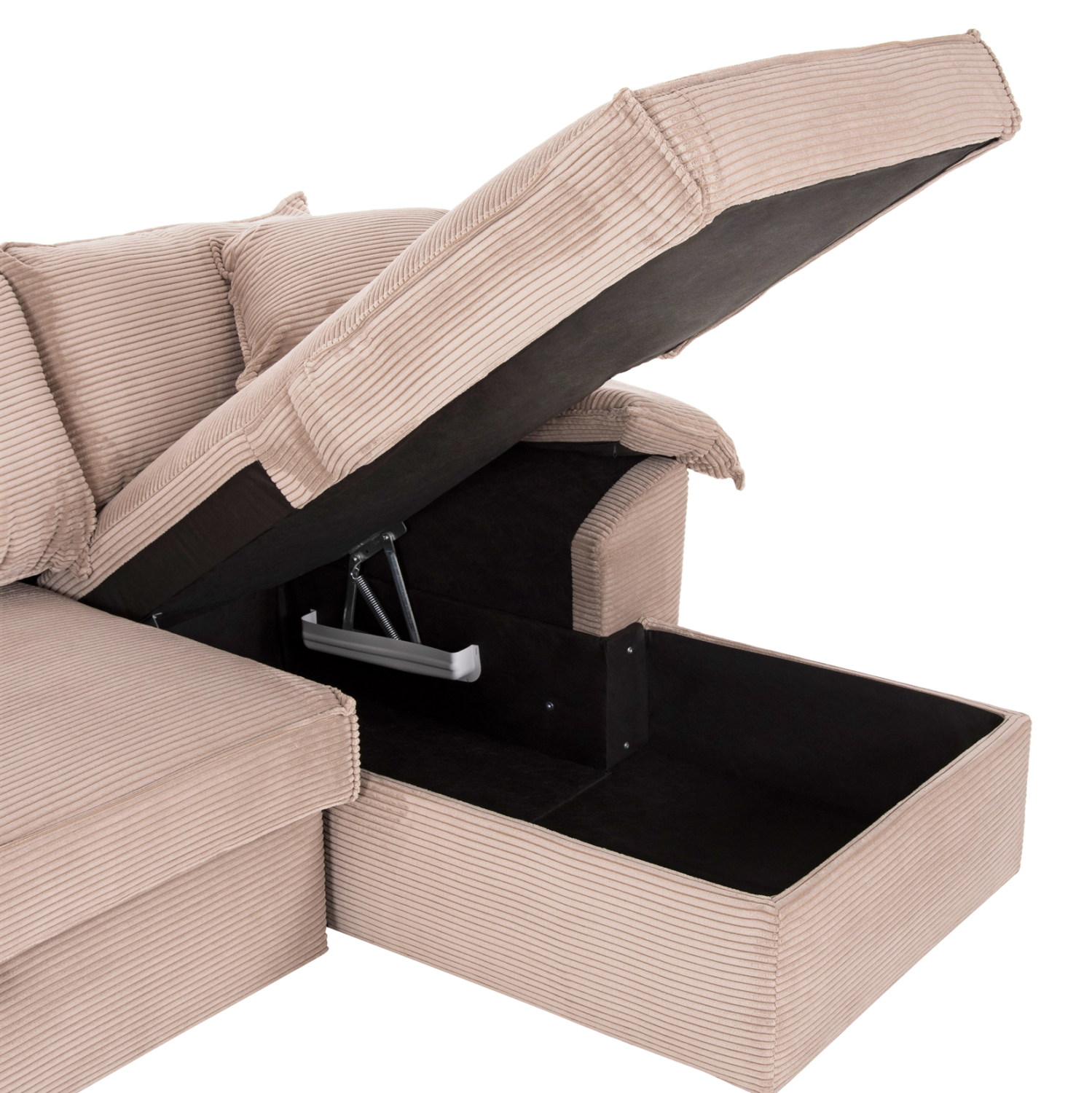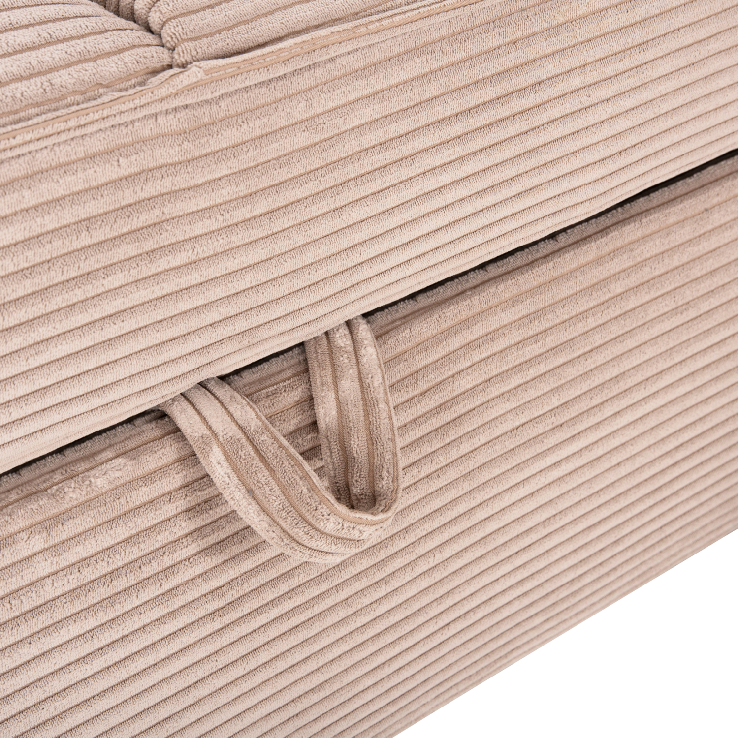 Ο ALDO είναι ένας καινούργιος 3-θέσιος καναπές σε διαμόρφωση δεξιάς γωνίας (όπως τον κοιτάς). Είναι επενδυμένος με όμορφο ριγωτό (στυλ κοτλέ) ύφασμα σε ΜΠΕΖ χρώμα ενώ το κομμάτι που σχηματίζει την γωνία ενώνεται με τον κυρίως καναπέ με κατακόρυφους αναρτήρες πάνελ. Διαθέτει 3 μαξιλάρια πλάτης, ενώ το κάθισμα διαθέτει γεμίσματα αφρού μεσαίας σκληρότητας σε συνδυασμό με οριζόντια (ζιγκ-ζαγκ) ελατήρια προσφέροντας απαράμιλλη άνεση. Το χαρακτηριστικό, όμως, που κάνει αυτόν τον υπέροχο καναπέ να ξεχωρίζει, είναι ότι με δύο απλές κινήσεις γίνεται διπλό κρεβάτι, προσφέροντας μια ποιοτική λύση όπου και όταν χρειαστεί! Απλά τραβάτε με ένα υφασμάτινο χερούλι το «ράντζο» που υπάρχει κάτω από το κυρίως κάθισμα του καναπέ και το ανασηκώνετε. Και σαν να μην έφτανε αυτό, ακριβώς κάτω από το κάθισμα της γωνίας του καναπέ, υπάρχει αποθηκευτικός χώρος που ολοκληρώνει την πρακτικότητα αυτού του μοναδικού επίπλου! Και φυσικά, σας προσφέρουμε αυτόν τον καναπέ με εγγύηση σκελετού 3 ετών! Ακόμα το σκέφτεστε;