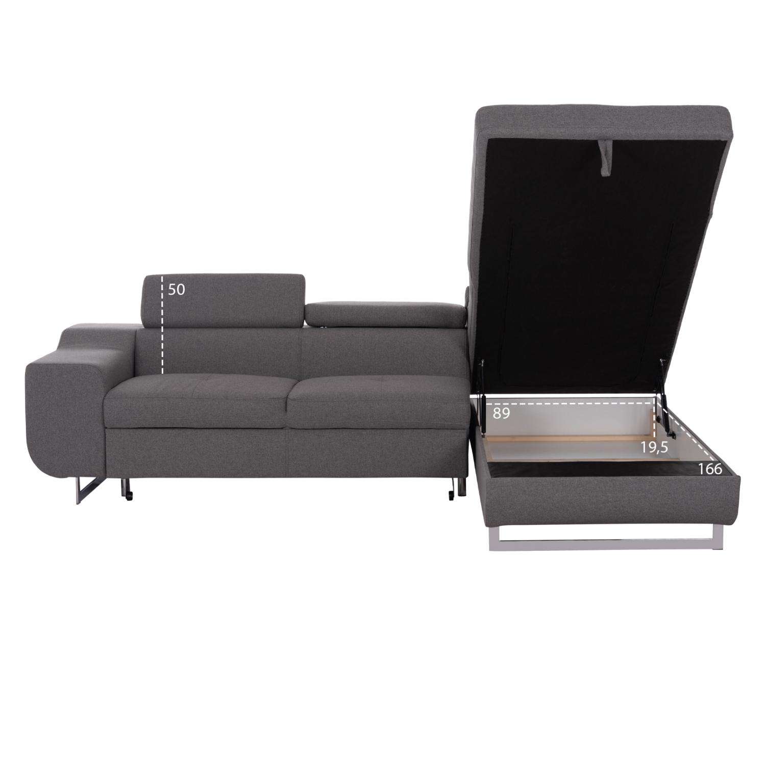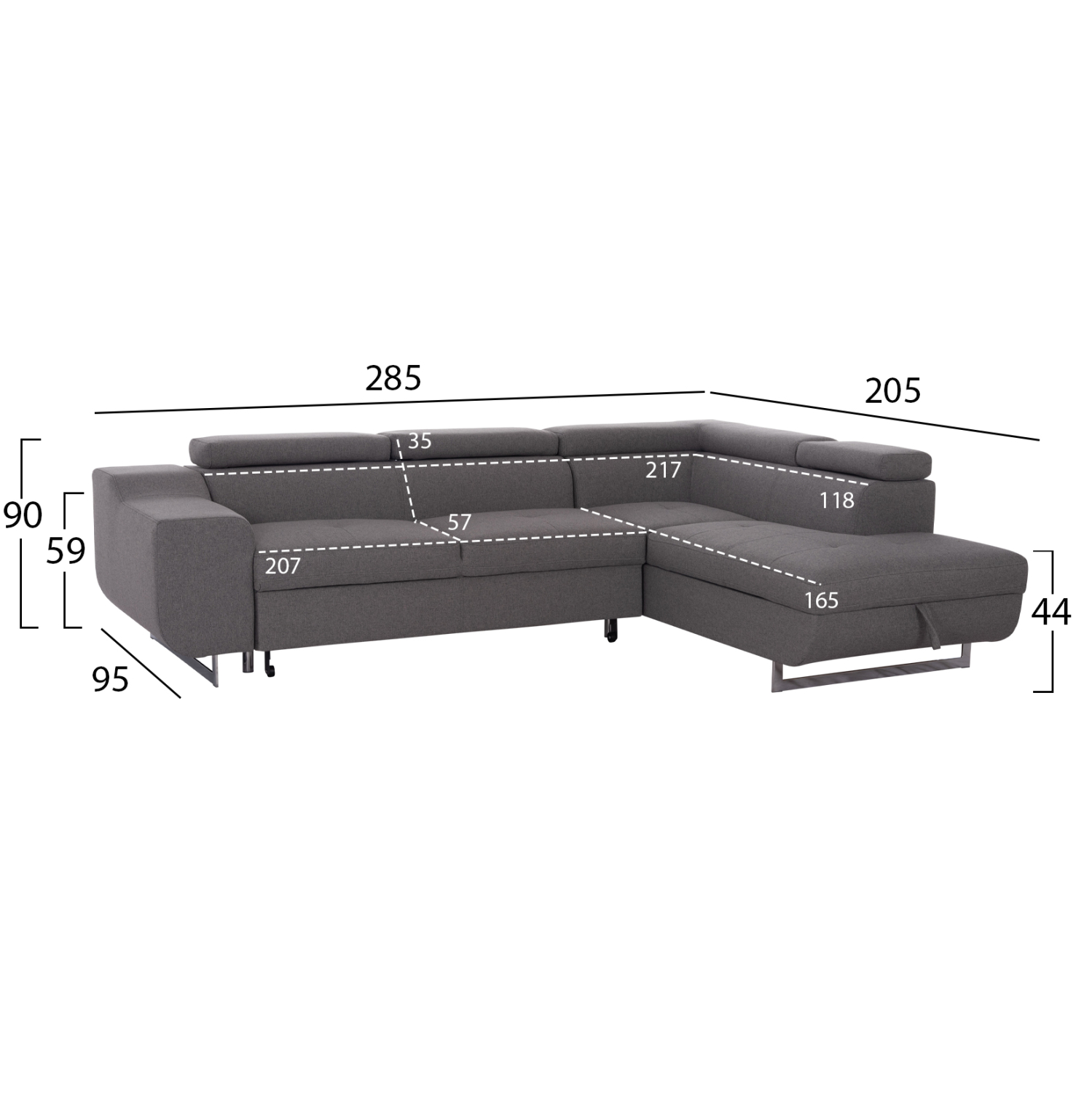 Ο ENCORE είναι ένας εξαιρετικός γωνιακός καναπές-κρεβάτι. Η επένδυσή του είναι με εξαιρετικής ποιότητας ΓΚΡΙ ύφασμα και τα πόδια είναι μεταλλικά και ψηλά. Τα χαρακτηριστικά του, όμως, τον κάνουν να ξεχωρίζει από κάθε άποψη! Η πλευρά που σχηματίζει την μόνιμη ΔΕΞΙΑ γωνία διαθέτει αποθηκευτικό χώρο ο οποίος είναι προσβάσιμος χάρη σε έναν εύχρηστο μηχανισμό με χερούλι-ιμάντα που ανασηκώνει το κάθισμα και το κρατάει ανασηκωμένο για να μπορείτε απερίσπαστοι να βάζετε και να βγάζετε ότι θέλετε. Το κρεβάτι σχηματίζεται τραβώντας το κάτω μέρος της αριστερής πλευράς και ανασηκώνοντας το εξτρά στρώμα (ράντζο) που είναι τοποθετημένο εκεί. Τέλος, τα 3 προσκέφαλα (εκτός της γωνίας) είναι ρυθμιζόμενα με λειτουργία recline, ολοκληρώνοντας με τον καλύτερο τρόπο την απαράμιλλη πρακτικότητα αυτού του υπέροχου καναπέ.