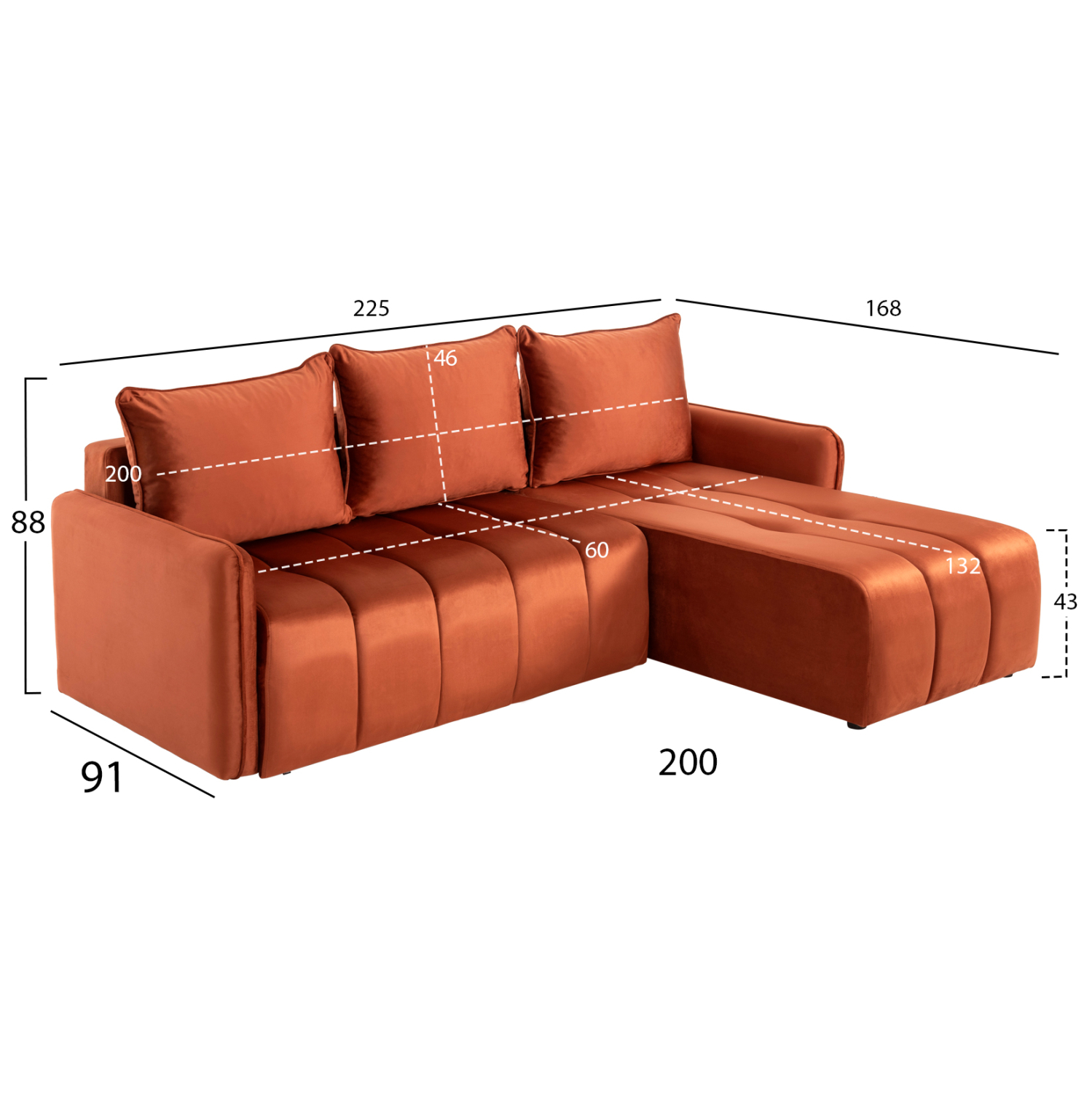 Αρχική σελίδα Έπιπλα εσωτερικού χώρου Καναπέδες - Κρεβάτι ΓΩΝΙΑΚΟΣ ΚΑΝΑΠΕΣ-ΚΡΕΒΑΤΙ PROTON HM3272.09 ΠΟΡΤΟΚΑΛΙ ΒΕΛΟΥΔΟ 225x94x70Υεκ.