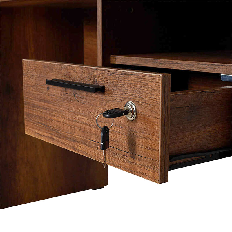 • Διαθέτει ένα συρτάρι στα δεξιά με σύστημα κλειδώματος και ένα ράφι ακριβώς από πάνω.