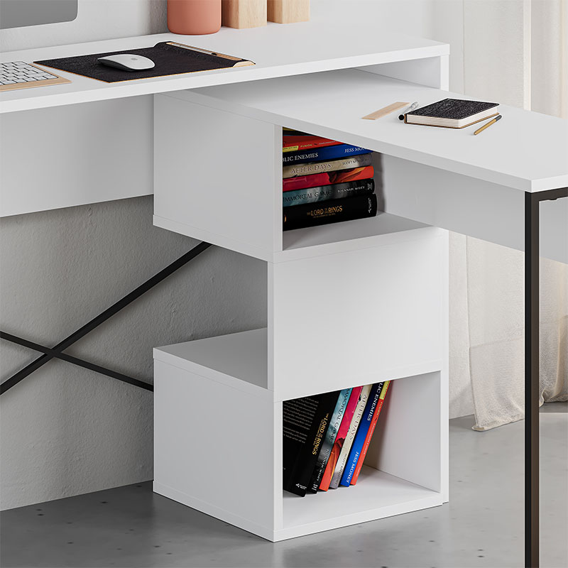 Αρχική σελίδα Έπιπλα γραφείου Γραφεία Γραφείο εργασίας πολυμορφικό Badau Megapap χρώμα λευκό 110×37,2×77εκ.