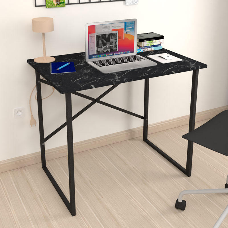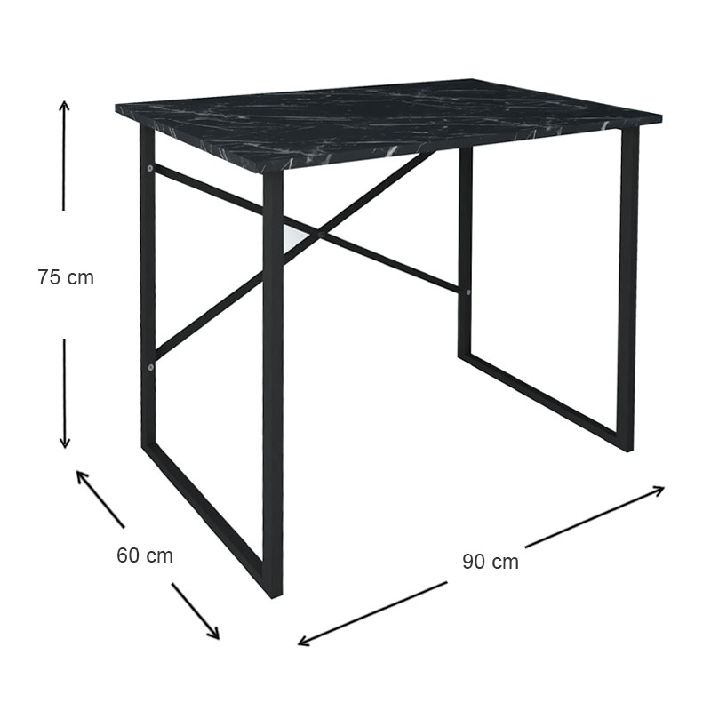 Γραφείο εργασίας Rilke Megapap μεταλλικό – μελαμίνης χρώμα μαύρο εφέ μαρμάρου 90x60x75εκ.
