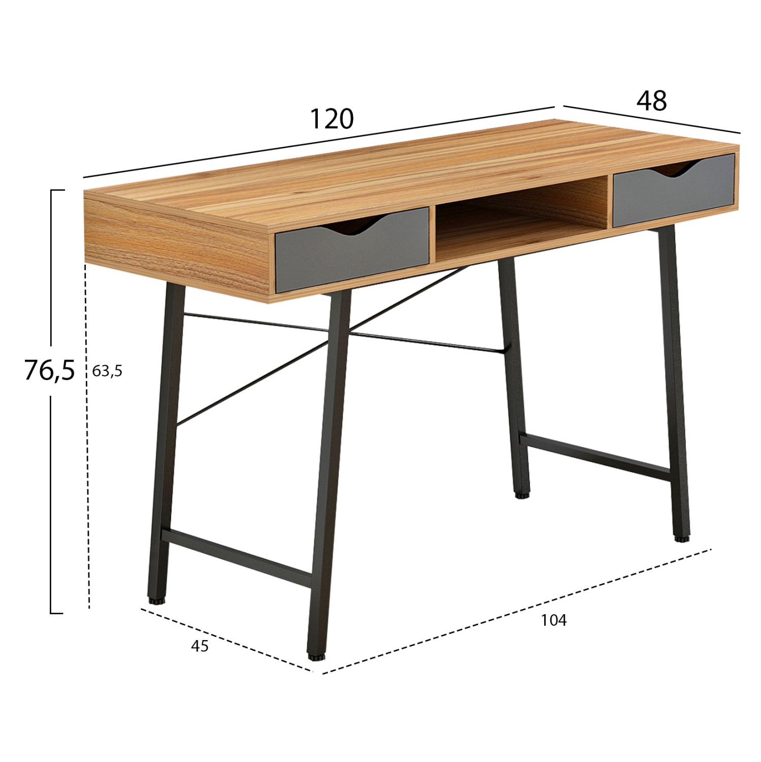 ΓΡΑΦΕΙΟ ΚΑΡΥΔΙ-ΓΚΡΙ ΜΕ ΜΑΥΡΟ ΜΑΤ ΣΚΕΛΕΤΟ HM2128.03 120x48x76,5Υ εκ.