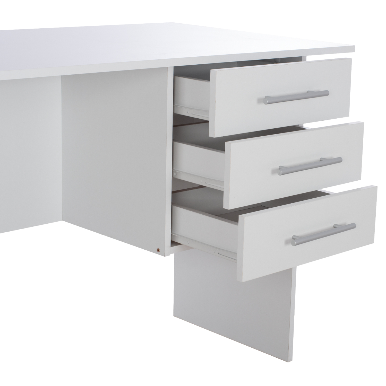 Διαθέτει μια επιφάνεια εργασίας από μελαμίνη σε λευκό χρώμα και τρια βοηθητικά συρτάρια.