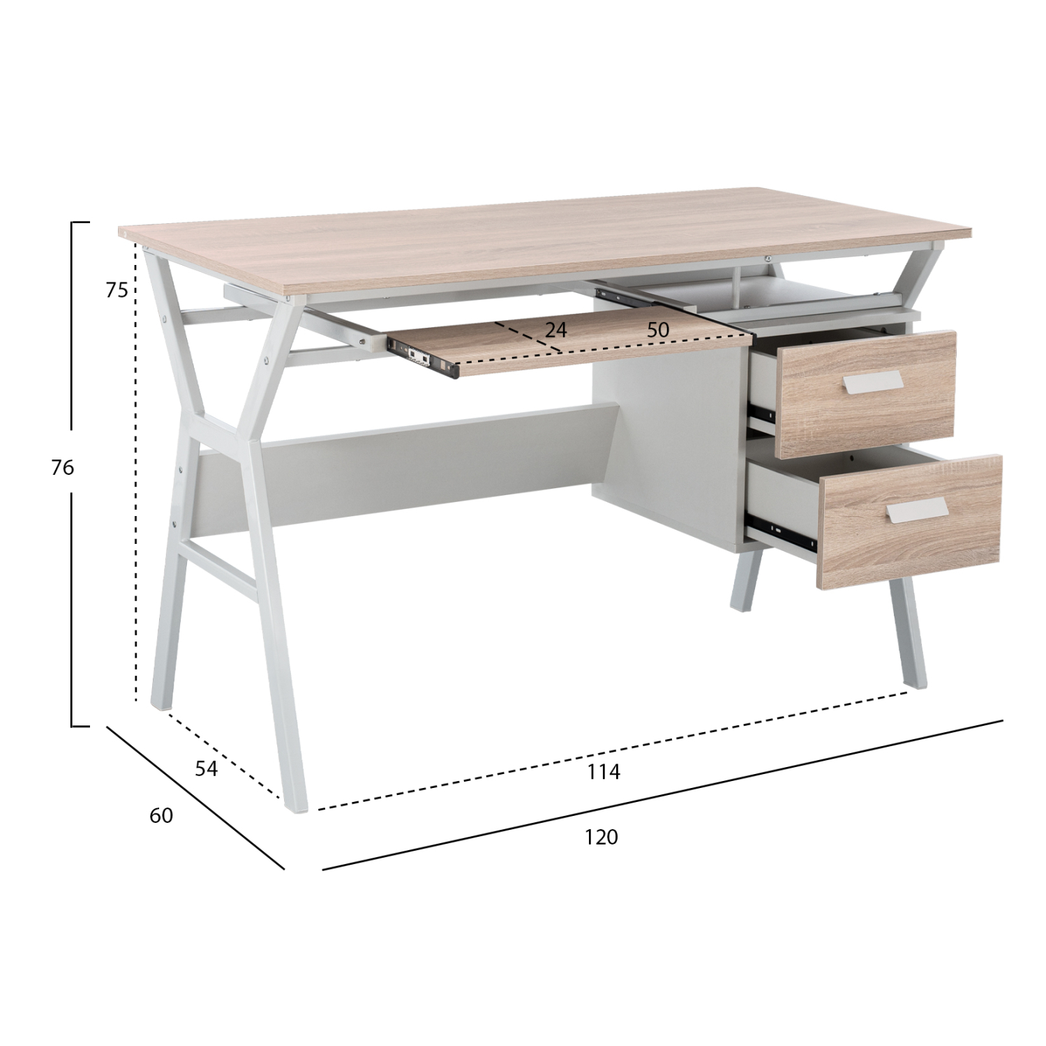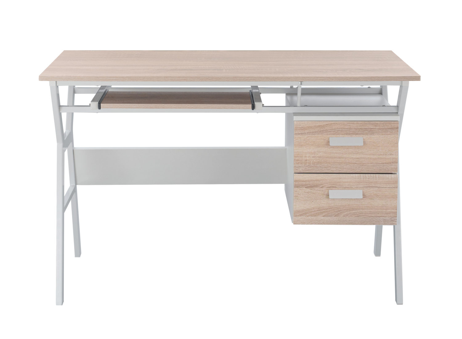 Το VITINO είναι λιτό και διαθέτει δύο συρτάρια στην δεξιά πλευρά και μια συρταρωτή θέση για πληκτρολόγιο υπολογιστή κάτω από την κύρια επιφάνεια .