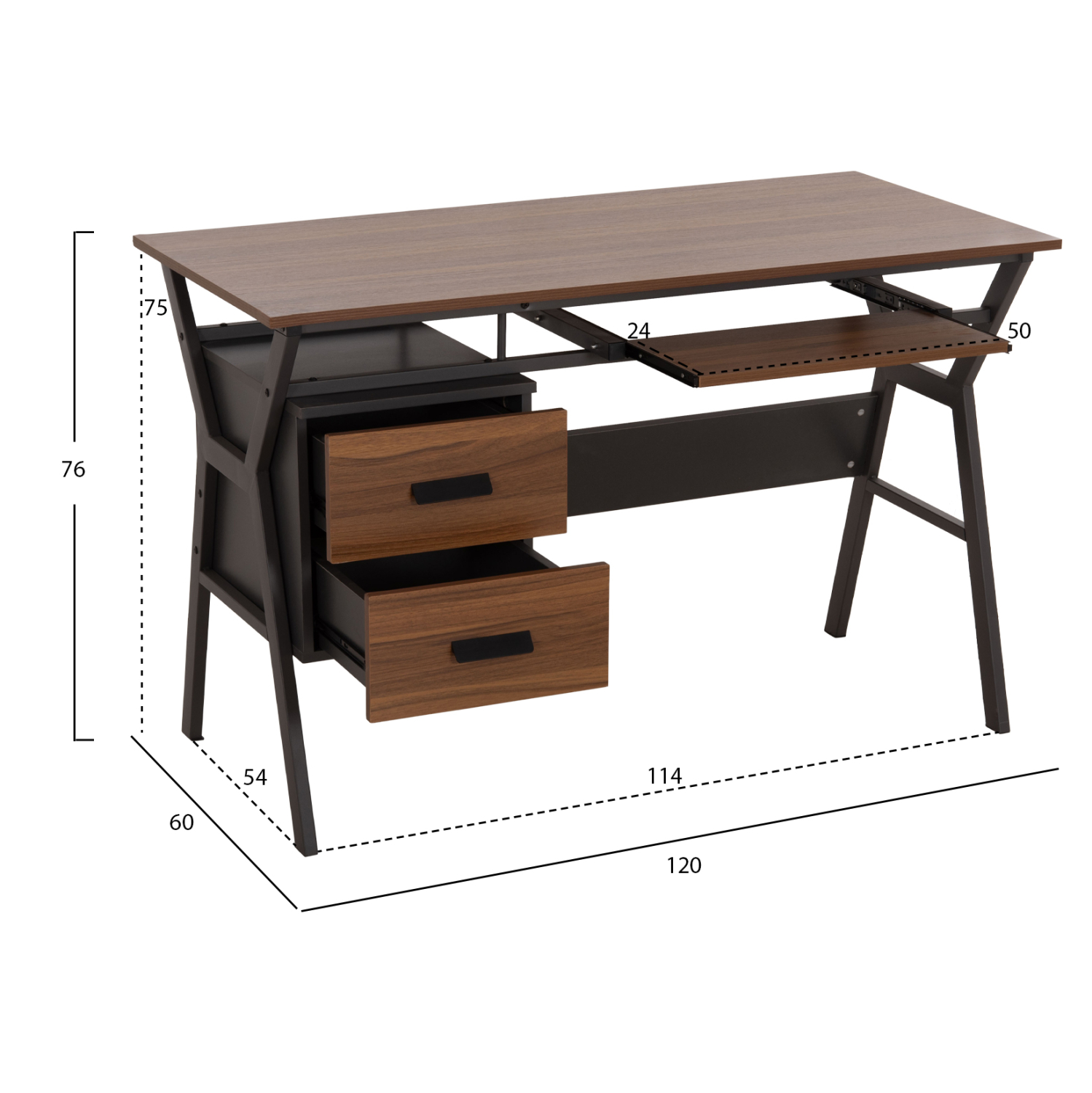 ΓΡΑΦΕΙΟ VITINO HM2130.03 ΜΕΛΑΜΙΝΗ-ΜΕΤΑΛΛΟ ΣΕ ΚΑΡΥΔΙ-ΓΚΡΙ 120X60X76εκ.