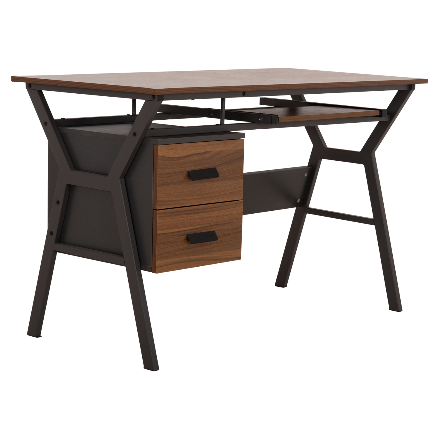 Το VITINO είναι λιτό και διαθέτει δύο συρτάρια στην δεξιά πλευρά και μια συρταρωτή θέση για πληκτρολόγιο υπολογιστή κάτω από την κύρια επιφάνεια .