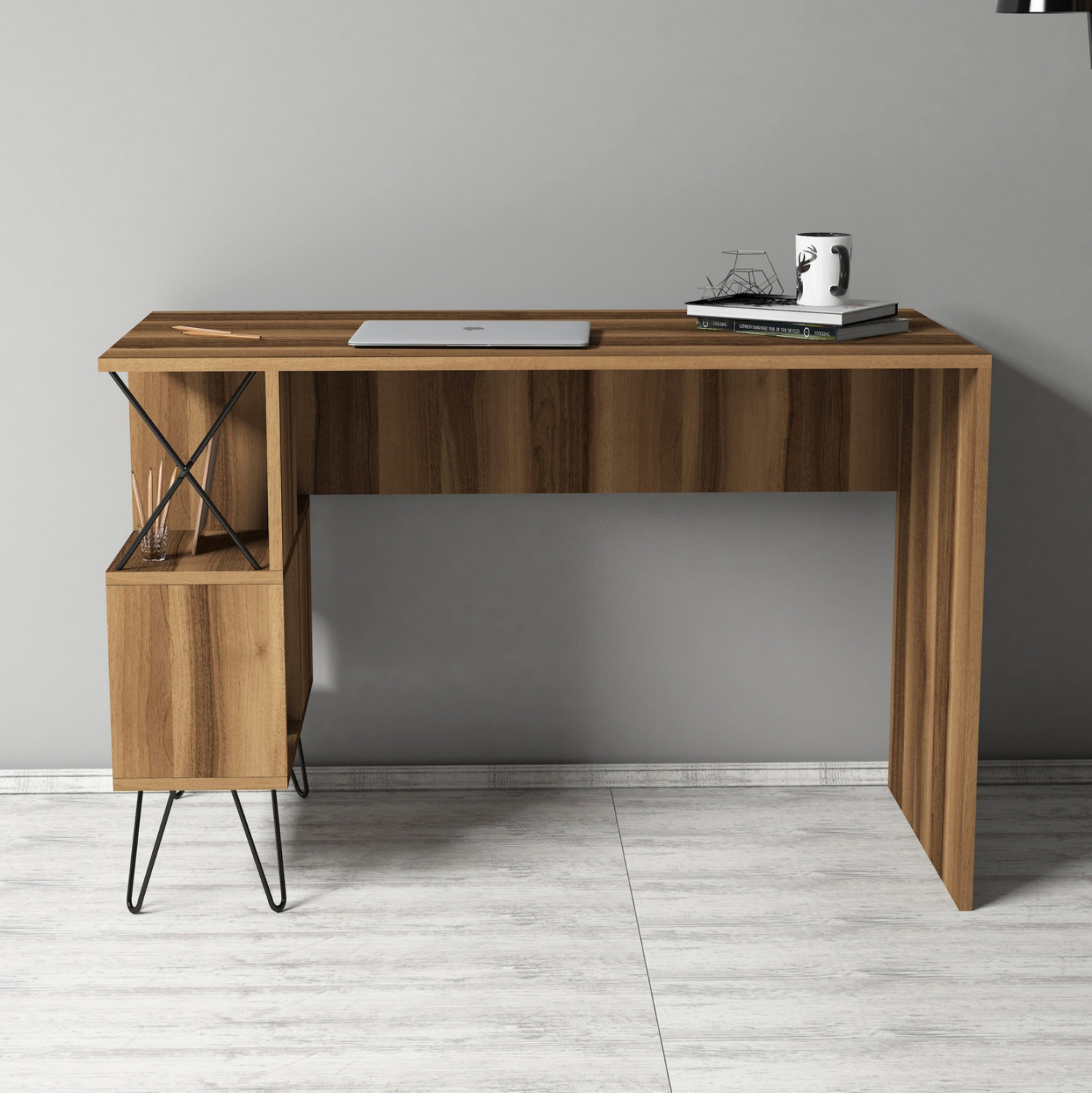 Το γραφείο ΗΜ9509.02 είναι μια ποιοτική πρόταση, κυρίως, για το γραφείο στο σπίτι. Το ΚΑΡΥΔΙ χρώμα κάνει το έπιπλο να κυριαρχεί στον χώρο. Η εξαιρετική και πρακτική κατασκευή εξασφαλίζει ότι θα περνάτε ευχάριστα όλες τις ώρες της εργασίας σας, που γνωρίζουμε ότι είναι πολλές! Άλλωστε, το γραφείο είναι το βασικότερο έπιπλο σε ένα δωμάτιο και θα πρέπει να το επιλέξετε προσεκτικά. Το ΗΜ9509.02 διαθέτει 4 ανοιχτούς χώρους τοποθέτησης αντικειμένων σε σχήμα κύβων στην αριστερή πλευρά και φυσικά μια ικανοποιητικού μεγέθους επιφάνεια. Το design είναι μοντέρνο με αποτέλεσμα τα πόδια της αριστερής πλευράς να είναι μεταλλικά σε μαύρο χρώμα ενώ η δεξιά πλευρά στηρίζεται με πάνελ μελαμίνης.