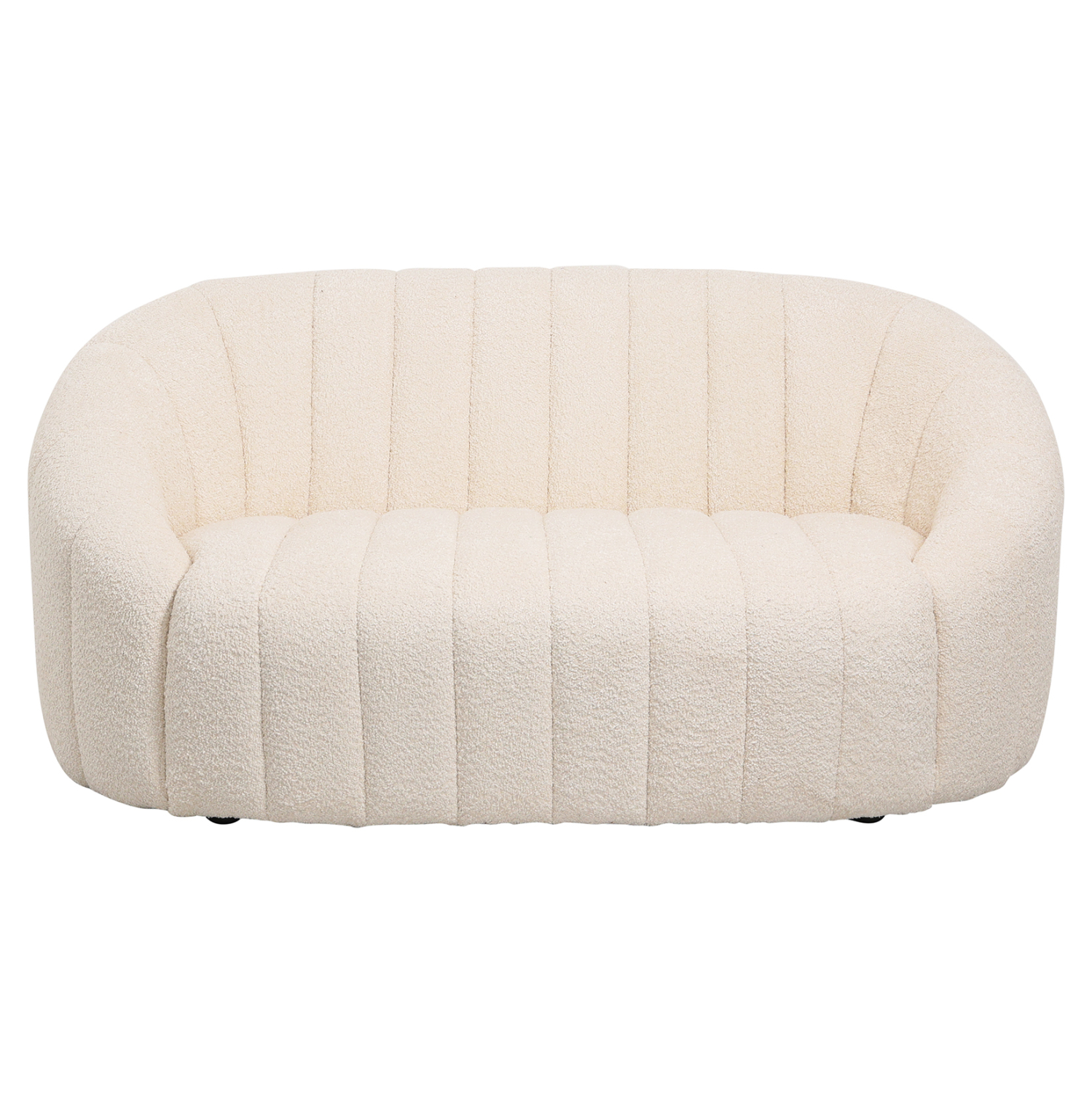Η επένδυση του καναπέ έχει γίνει εξολοκλήρου με εξαιρετικής ποιότητας μπουκλέ ύφασμα. Μπουκλέ λέγεται οποιοδήποτε ύφασμα που έχει κόμπο-μπούκλα στην ύφανσή του. Κατασκευάζεται από σχεδόν όλες τις πρώτες ύλες (αν και συνήθως είναι συνθετικό) με ειδικές κλωστές με κόμπους ή πολύ στριμμένα νήματα, έτσι ώστε να έχει σγουρή επιφάνεια. Δεν τσαλακώνει και μπορεί να είναι μονόχρωμο, μελανζέ ,καρώ ή τουιντ.