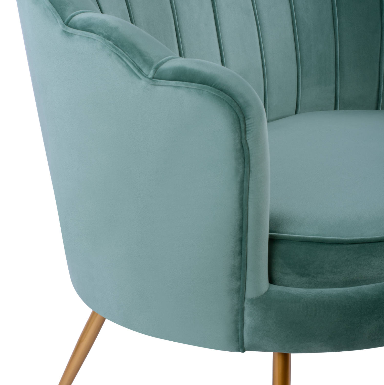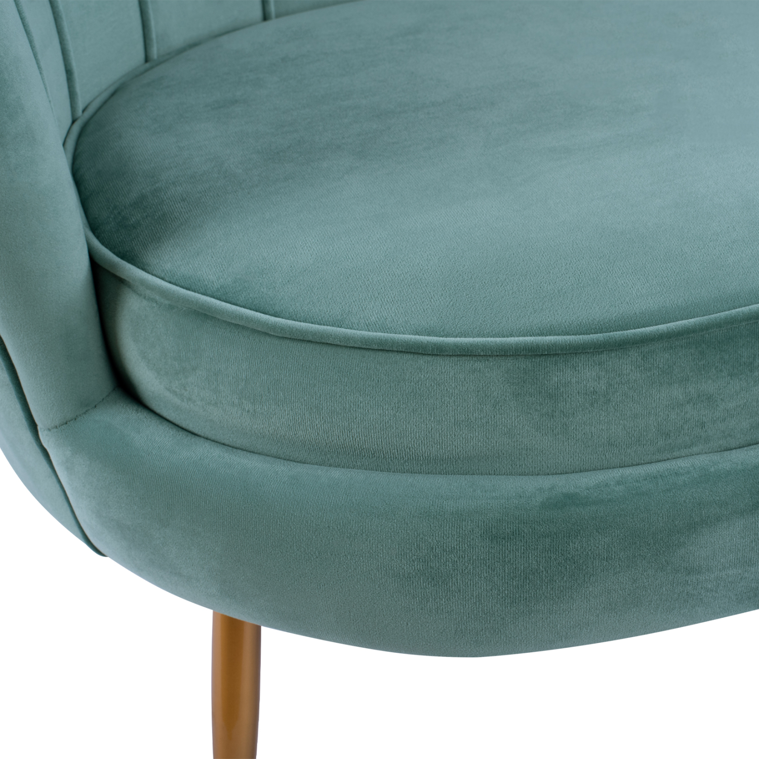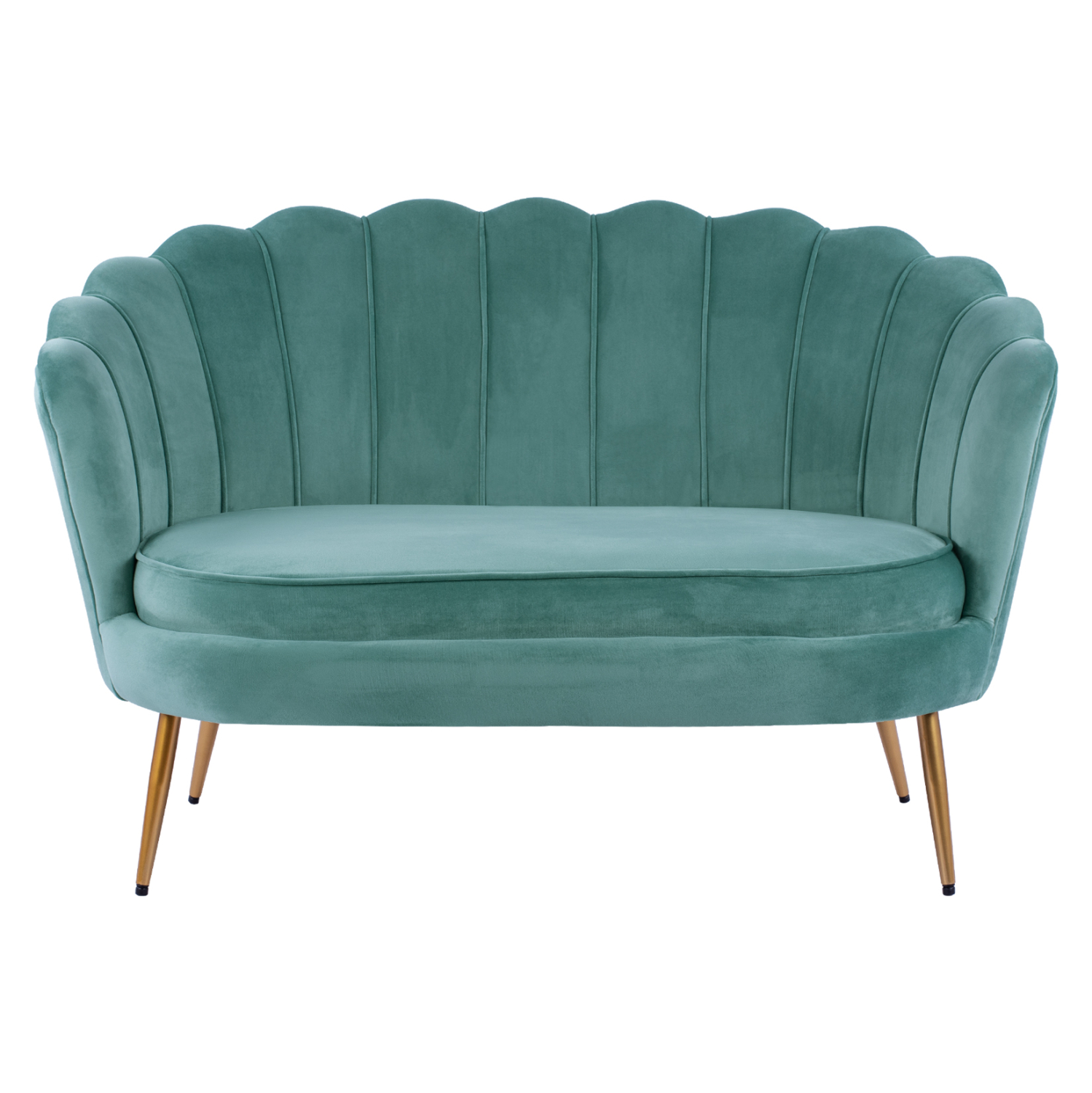 Καναπές διθέσιος COQUILLE από βελούδο σε φυστικί απόχρωση με μεταλλικά πόδια σε χρυσή απόχρωση.