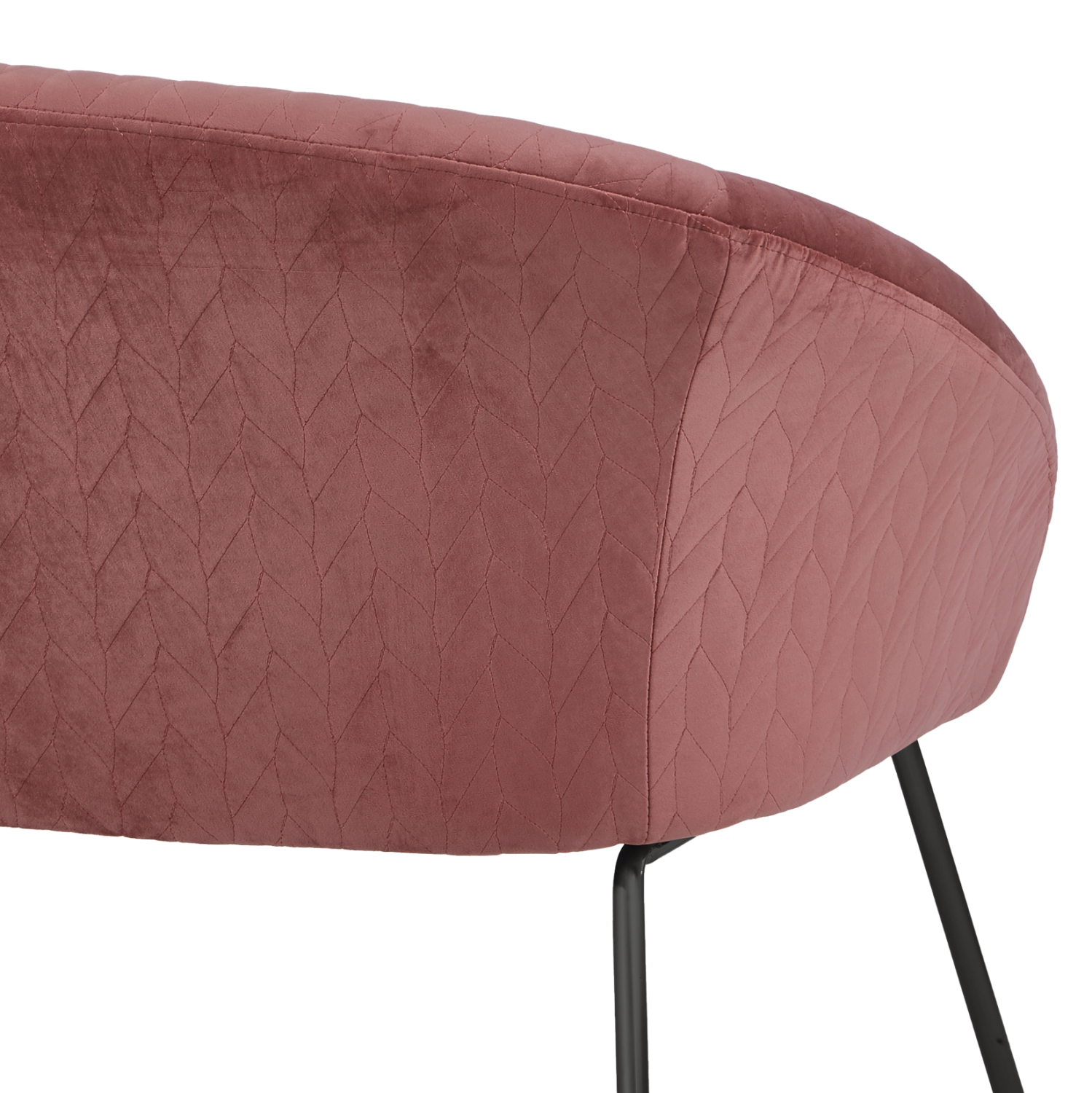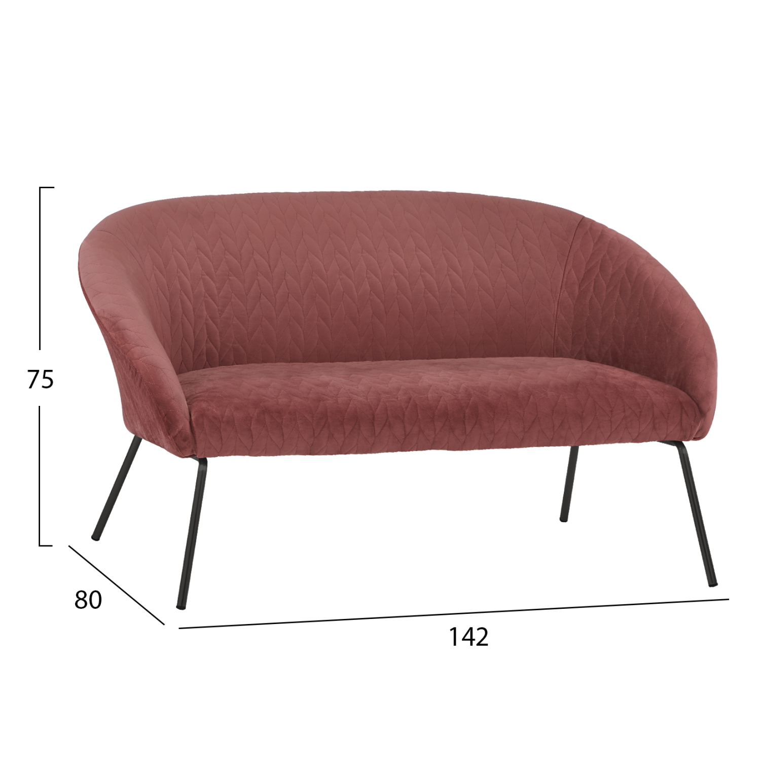 Διθέσιος καναπές JOYCE με ύφασμα βελούδο σε απόχρωση σάπιου μήλου και μεταλλικά πόδια σε μαύρη απόχρωση.
