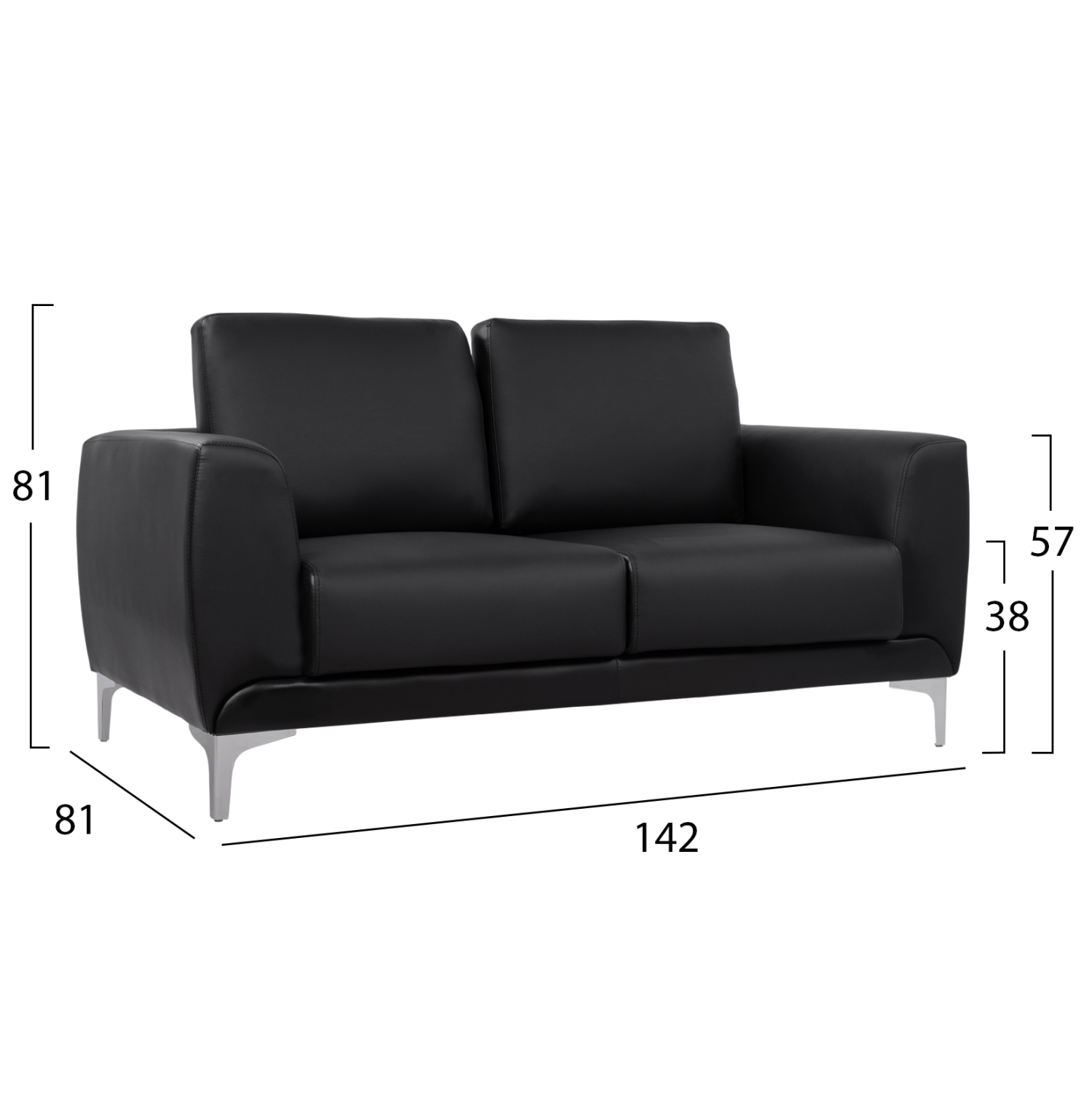 Καναπές διθέσιος με τεχνόδερμα σε μαύρη απόχρωση 142x81x81 εκ.