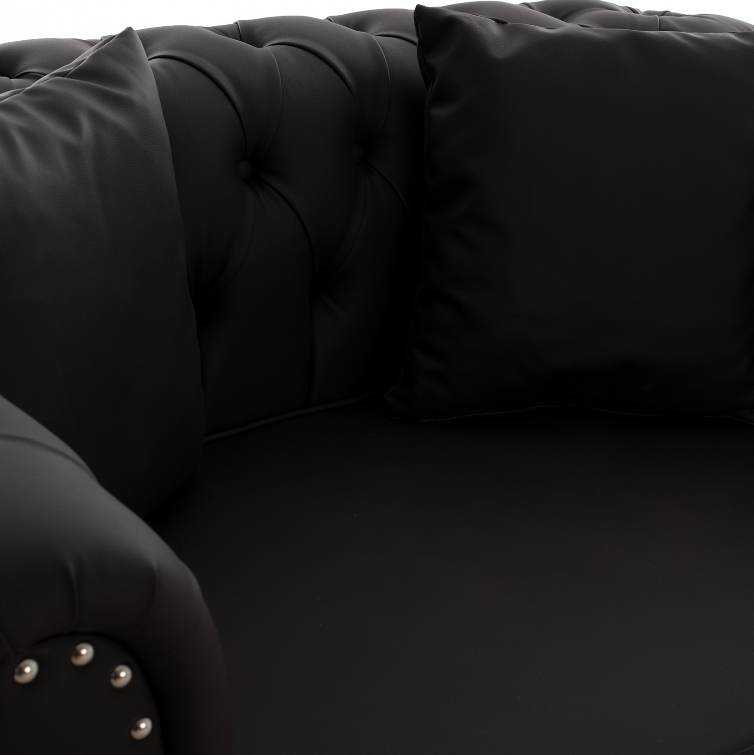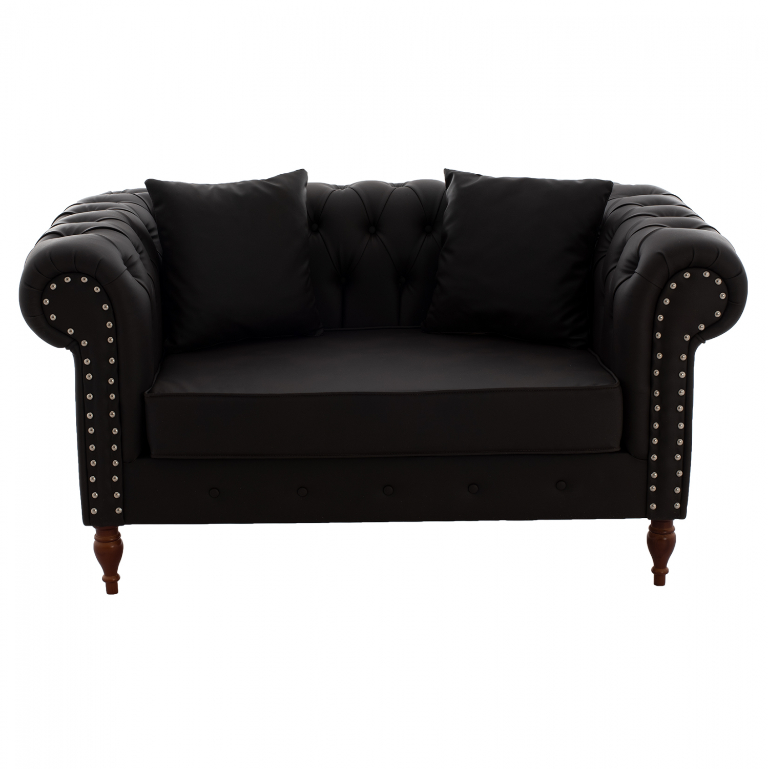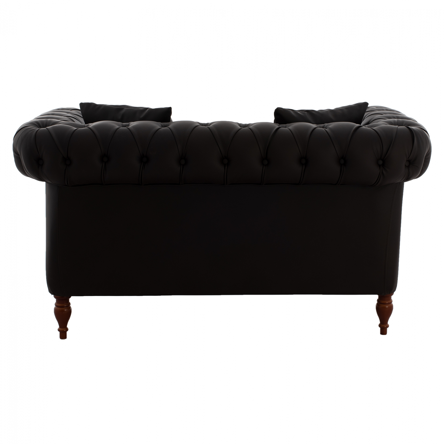 Καναπές διθέσιος τύπου Chesterfield, με τεχνόδερμα καφέ 152x85x80 εκ.