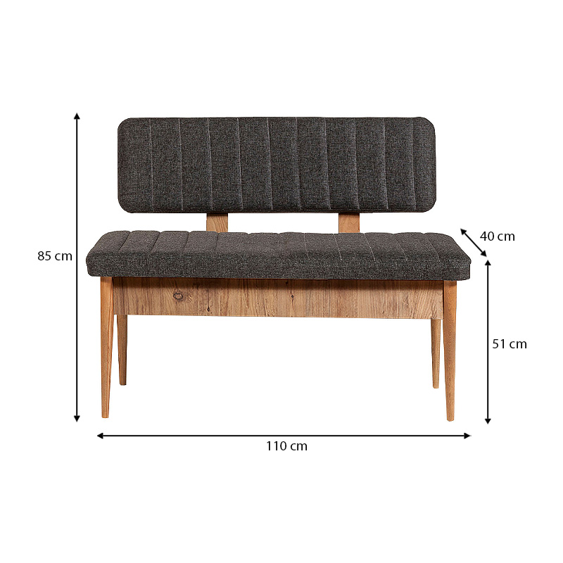 Καναπές διθέσιος – Παγκάκι Alden Megapap από μελαμίνη – ύφασμα χρώμα ανθρακί 110x40x85εκ.