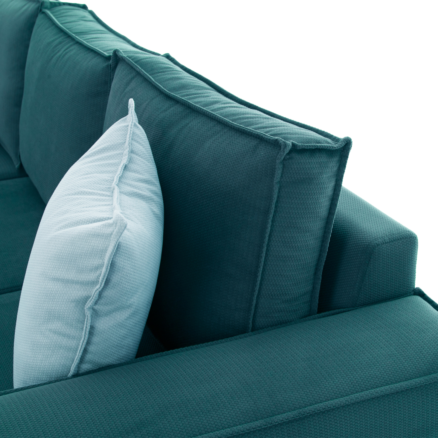 Ξεκινώντας από τα βασικά και τα προφανή, το χρώμα της επένδυσης με την βελούδινη υφή αυτού του καναπέ, είναι ΠΕΤΡΟΛ ΠΡΑΣΙΝΟ. Διαθέτει 3 μαξιλάρια πλάτης και 3 μαξιλάρια καθίσματος που θα δώσουν την τέλεια αίσθηση άνεσης! Η ευχάριστη αισθητική πινελιά με το ρέλι στο ίδιο χρώμα που διατρέχει τις γωνίες στα μπράτσα αλλά και τα μαξιλάρια πλάτης και τα διακοσμητικά μαξιλάρια ολοκληρώνει την αισθητική υπεροχή του καναπέ με τον καλύτερο τρόπο.