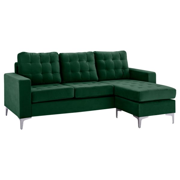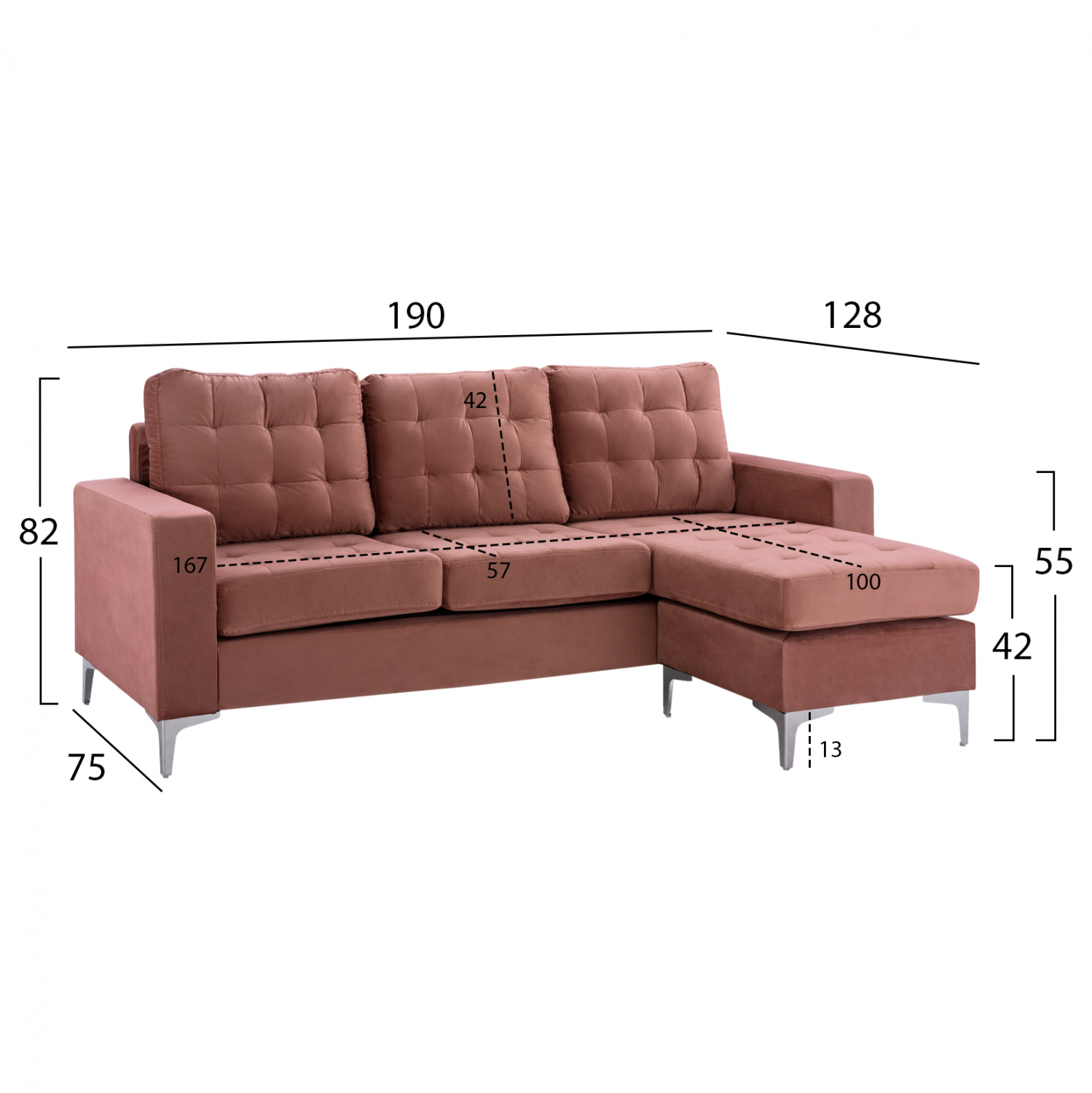 Καναπές γωνία, επενδεδυμένος με βελούδινο ύφασμα σε σάπιο μήλο απόχρωση 190×75-128×82Υ εκ.