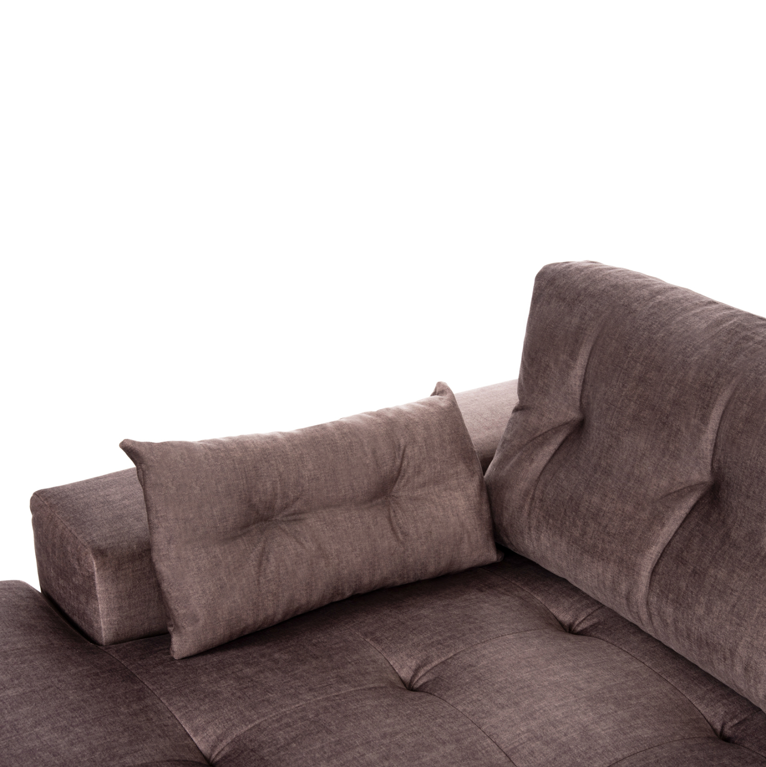 Ο CLANCY είναι ένας υπέροχος καινούργιος 3-θέσιος καναπές με ψηλό ύψος καθίσματος σε διαμόρφωση ΑΡΙΣΤΕΡΗΣ γωνίας (όπως τον κοιτάς) που θα σας ενθουσιάσει. Είναι επενδυμένος με όμορφο γυαλιστερό (στυλ σατέν) ύφασμα σε ΚΑΦΕ χρώμα και καπιτονέ τεχνοτροπία, ενώ το κομμάτι που σχηματίζει την γωνία ενώνεται με τον κυρίως καναπέ με κατακόρυφους αναρτήρες πάνελ. Διαθέτει 3 μαξιλάρια πλάτης και 2 μικρότερα διακοσμητικά μαξιλαράκια, ενώ το κάθισμα διαθέτει γεμίσματα αφρού μεσαίας σκληρότητας σε συνδυασμό με οριζόντια (ζιγκ-ζαγκ) ελατήρια προσφέροντας απαράμιλλη άνεση. Το χαρακτηριστικό, όμως, που κάνει αυτόν τον υπέροχο καναπέ να ξεχωρίζει, είναι ότι με δύο απλές κινήσεις (μηχανισμός PUMA) γίνεται διπλό κρεβάτι, προσφέροντας μια ποιοτική λύση όπου και όταν χρειαστεί! Απλά ανασηκώνετε το κάθισμα του κυρίως καναπέ και το τραβάτε προς τα έξω. Και σαν να μην έφτανε αυτό, ακριβώς κάτω από το κάθισμα της γωνίας του καναπέ, υπάρχει αποθηκευτικός χώρος που ολοκληρώνει την πρακτικότητα αυτού του μοναδικού επίπλου! Και φυσικά, σας προσφέρουμε αυτόν τον καναπέ με εγγύηση σκελετού 3 ετών! Ακόμα το σκέφτεστε;