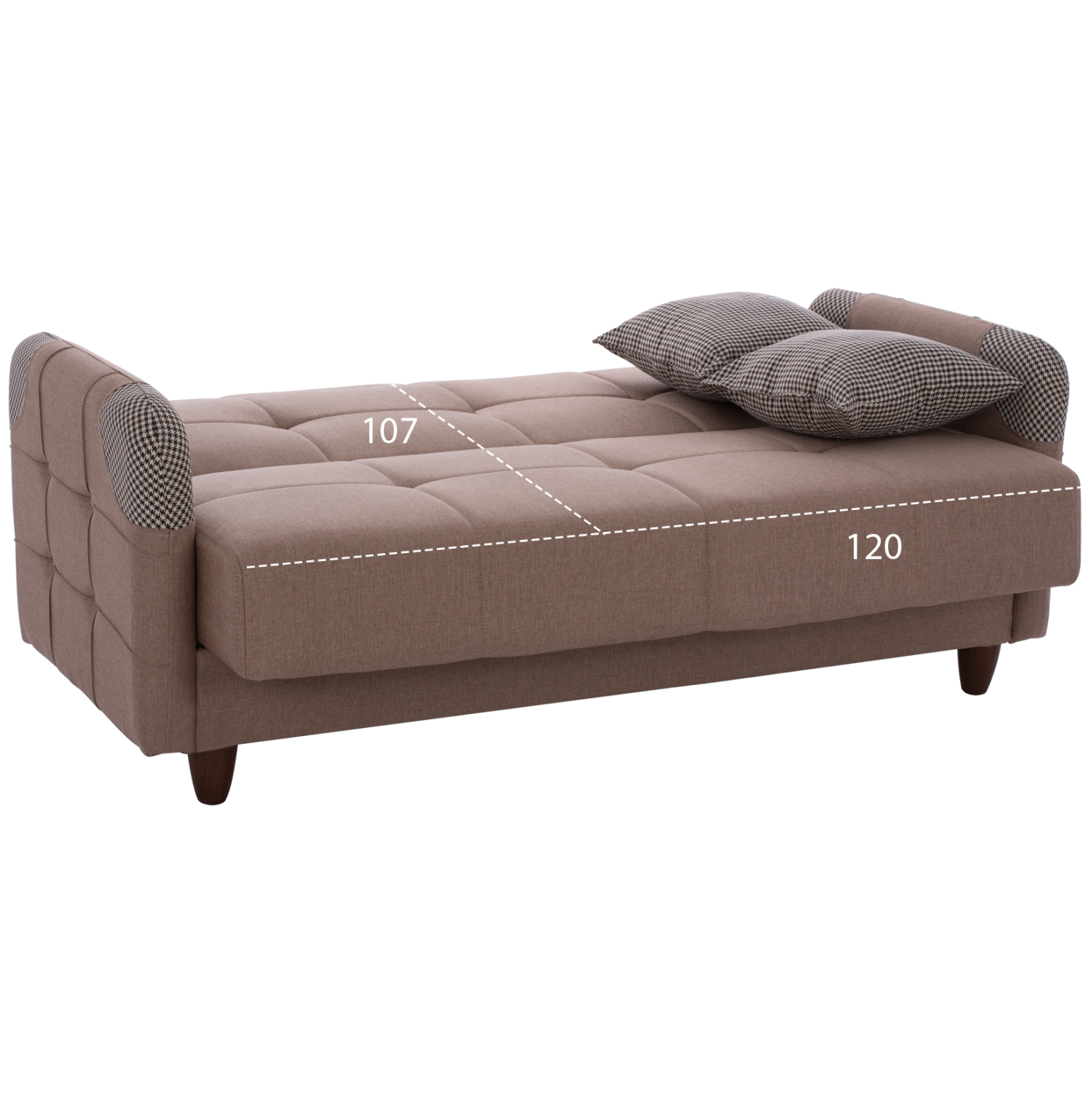 Το κύριο χαρακτηριστικό του καναπέ, όμως, είναι ότι πέφτει η πλάτη και μετατρέπεται σε κρεβάτι που θα σας επιτρέψει, σε μια ώρα ανάγκης, να φιλοξενήσετε φίλους και συγγενείς. Συνέπεια αυτού, βέβαια, είναι και η ύπαρξη δύο αποθηκευτικών χώρων κάτω από το κάθισμα του καναπέ, οι οποίοι πάντα είναι χρήσιμοι, ειδικά σε φοιτητικά σπίτια. Τέλος, τα πόδια του καναπέ σε καφέ χρώμα, είναι ψηλά επιτρέποντας το εύκολο καθάρισμα χωρίς να χρειαστεί να μετακινηθεί ολόκληρος ο καναπές.