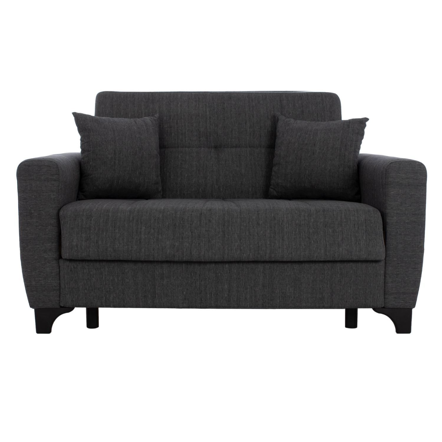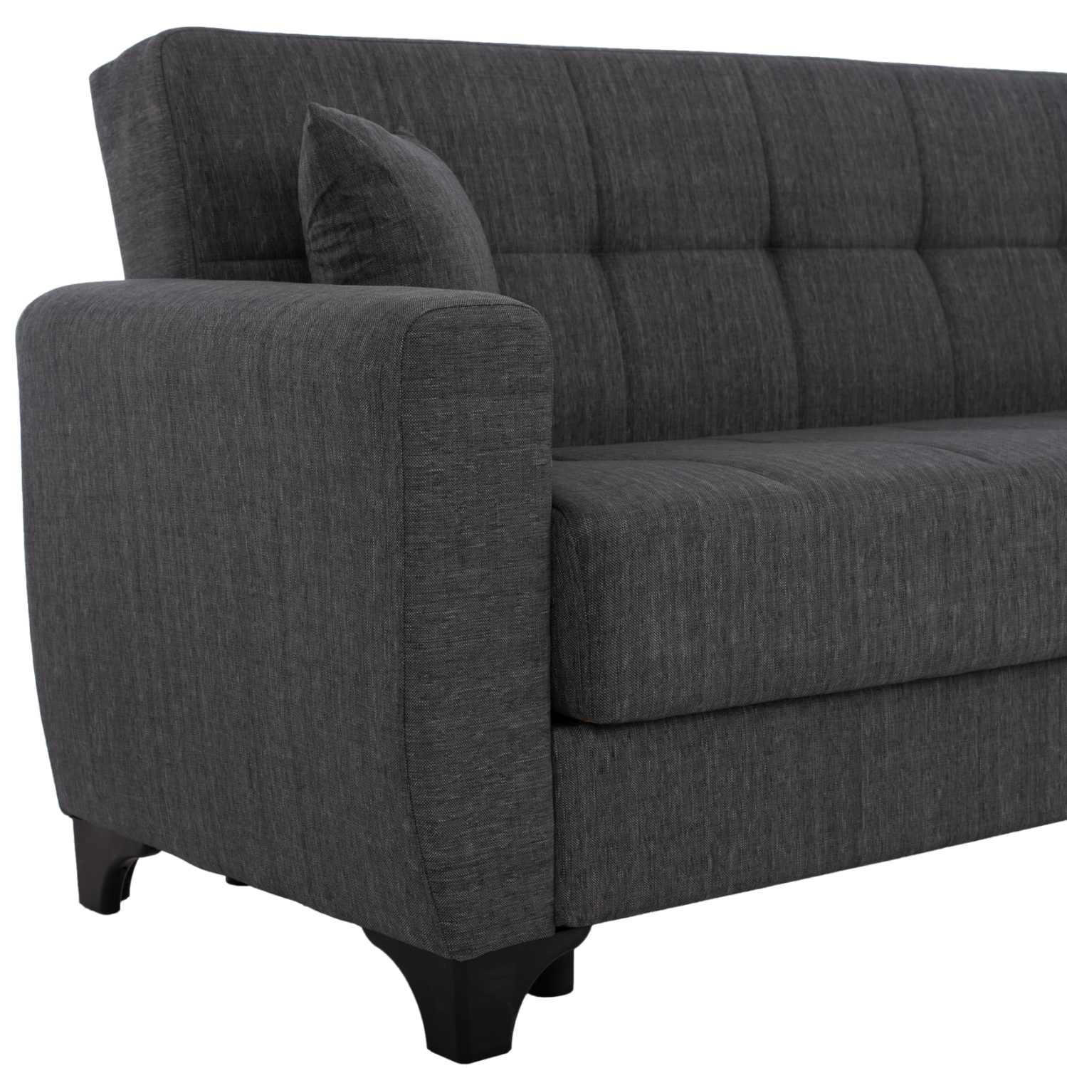 Το κύριο χαρακτηριστικό του καναπέ, όμως, είναι ότι πέφτει η αναπαυτικά ψηλή πλάτη και μετατρέπεται σε ένα μεγάλο κρεβάτι χάρη στην ψηλή πλάτη, με έναν εύχρηστο μηχανισμό «κλικ-κλακ». Και για να μην υπάρξει ποτέ κανένα πρόβλημα με τον καναπέ, υπάρχουν επιπλέον πόδια που χρησιμεύουν όταν ο καναπές γίνεται κρεβάτι! Συνέπεια αυτού, βέβαια, είναι και η ύπαρξη αποθηκευτικού χώρου κάτω από το κάθισμα του καναπέ, ο οποίος πάντα είναι χρήσιμος, ειδικά σε φοιτητικά σπίτια. Τέλος, τα πόδια του καναπέ σε μαύρο χρώμα, είναι ψηλά επιτρέποντας το εύκολο καθάρισμα χωρίς να χρειαστεί να μετακινηθεί ολόκληρος ο καναπές.