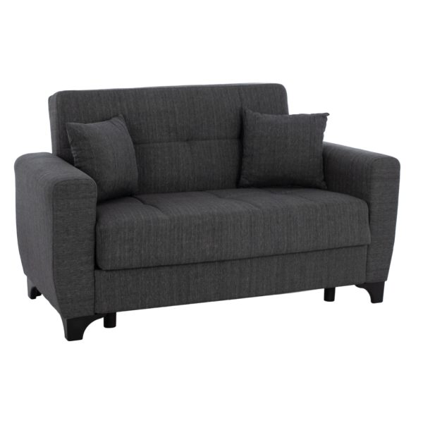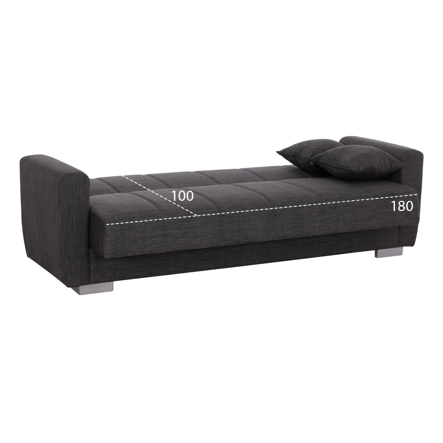Το κύριο χαρακτηριστικό του καναπέ, όμως, είναι ότι πέφτει η πλάτη και μετατρέπεται σε ένα άνετο κρεβάτι για έκτακτες περιπτώσεις, μέσω ενός εύχρηστου μηχανισμού «κλικ-κλακ». Συνέπεια αυτού, βέβαια, είναι και η ύπαρξη αποθηκευτικού χώρου κάτω από το κάθισμα του καναπέ, ο οποίος πάντα είναι χρήσιμος, ειδικά σε φοιτητικά σπίτια. Τέλος, τα πόδια του καναπέ είναι φαρδιά και χαμηλά δίνοντας στιβαρότητα σε όλη την κατασκευή.