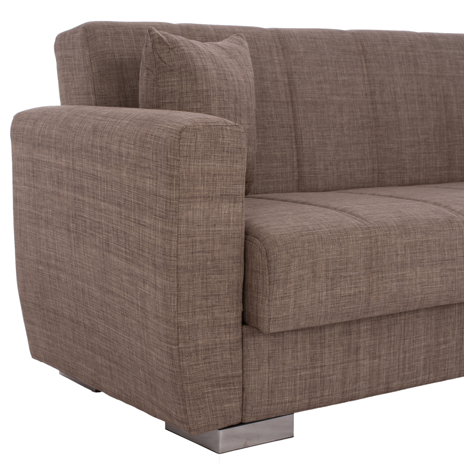 Η επένδυση του κρεβατιού έχει γίνει με ύφασμα εξαιρετικής ποιότητας, ενώ τα γεμίσματα τόσο στο κάθισμα, όσο και στην πλάτη είναι από μέτριας σκληρότητας αφρώδες υλικό που προσφέρει άνεση και ποιότητα στον ύπνο, όταν μετατρέπεται σε κρεβάτι.