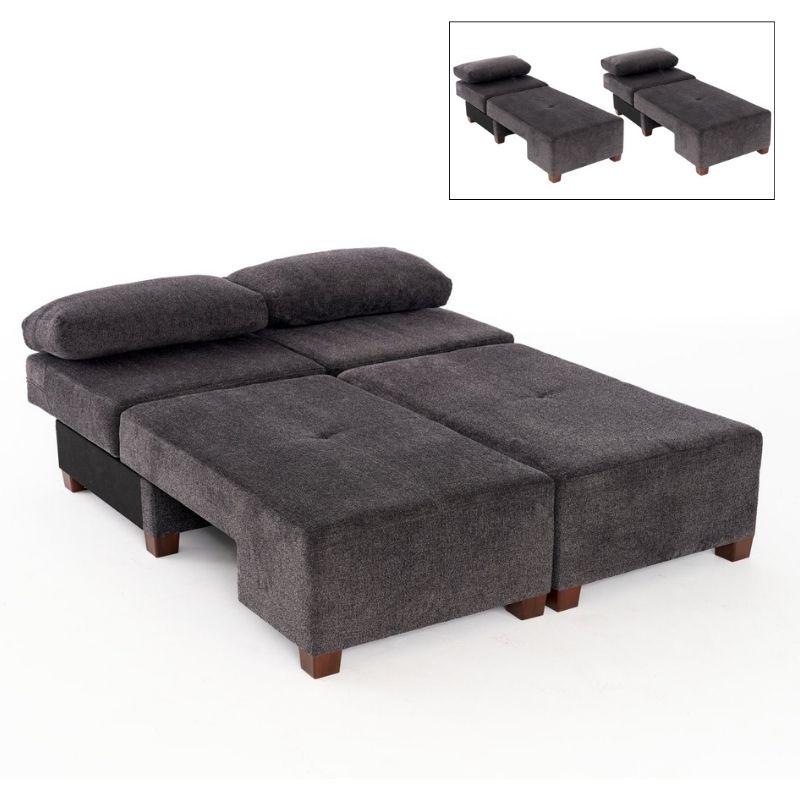 Καναπές – κρεβάτι πολυμορφικός Perenna Megapap τριθέσιος υφασμάτινος χρώμα ανθρακί 233x93x83εκ.
