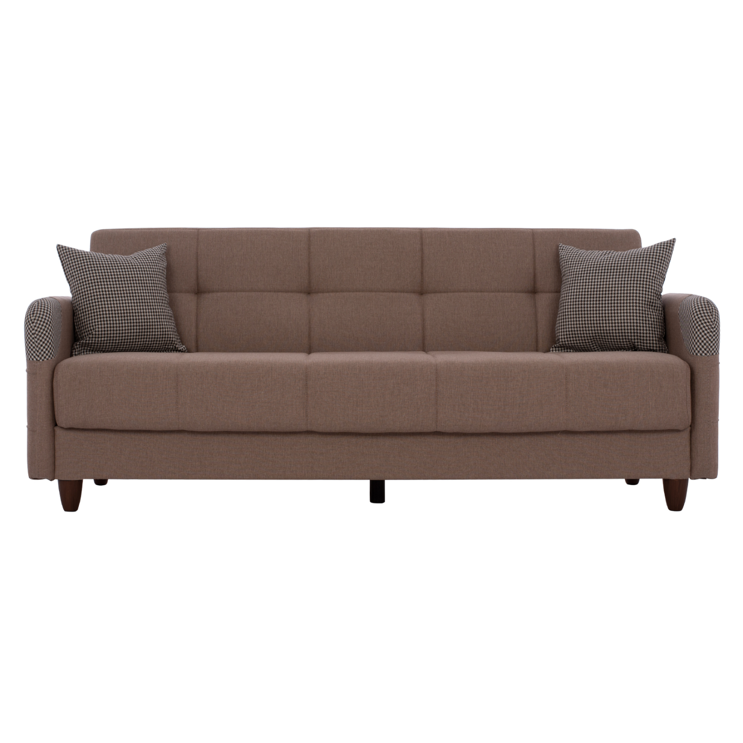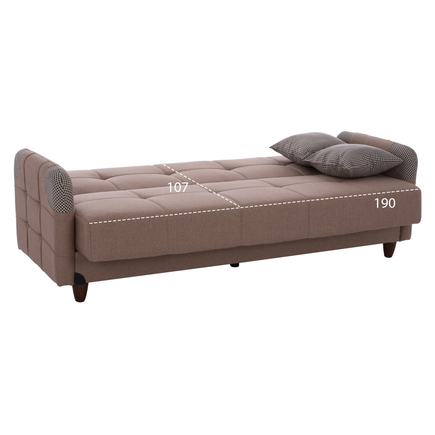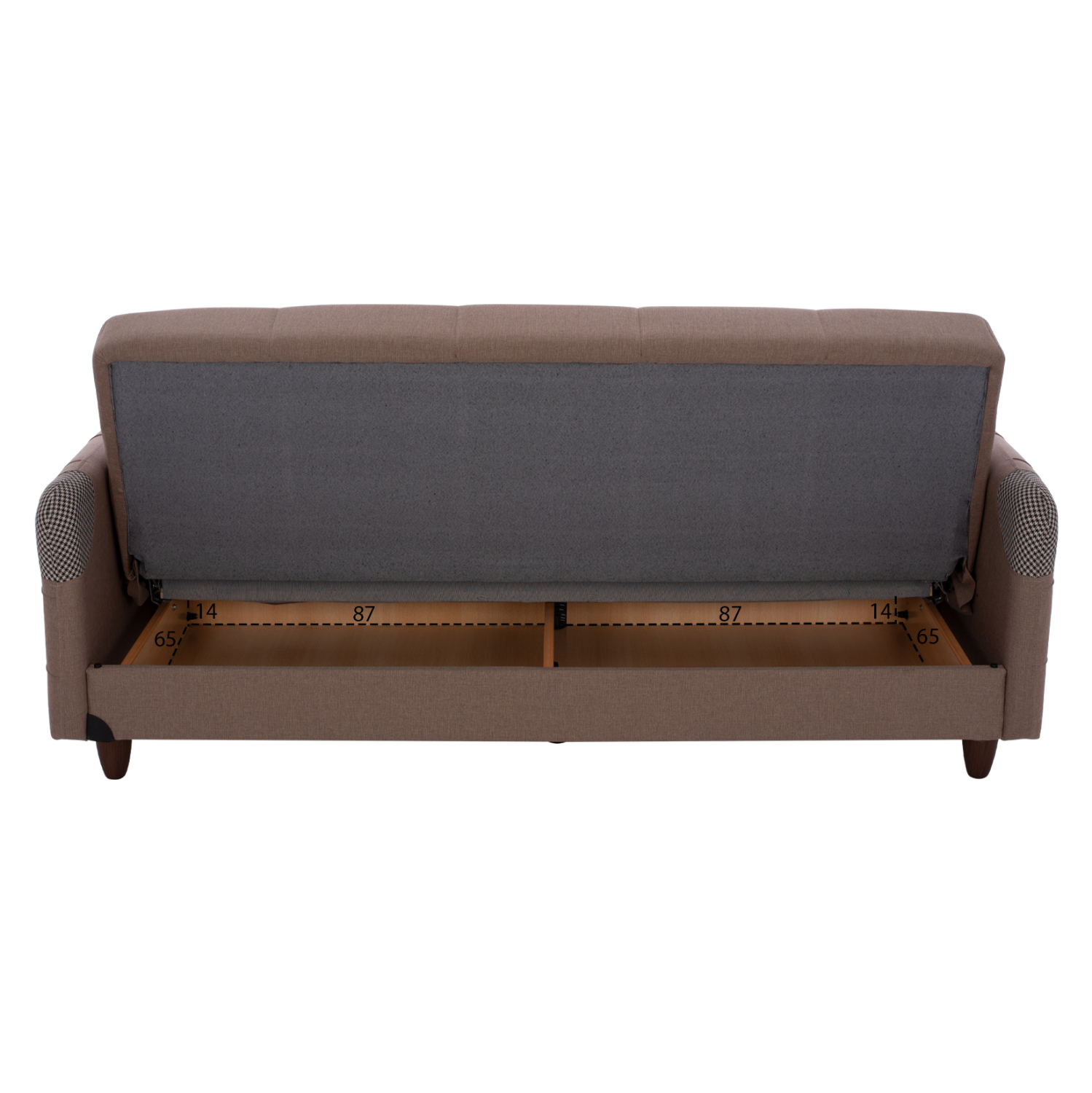 Συνέπεια αυτού, βέβαια, είναι και η ύπαρξη δύο αποθηκευτικών χώρων κάτω από το κάθισμα του καναπέ, οι οποίοι πάντα είναι χρήσιμοι, ειδικά σε φοιτητικά σπίτια. Τέλος, τα πόδια του καναπέ σε καφέ χρώμα, είναι ψηλά επιτρέποντας το εύκολο καθάρισμα χωρίς να χρειαστεί να μετακινηθεί ολόκληρος ο καναπές.
