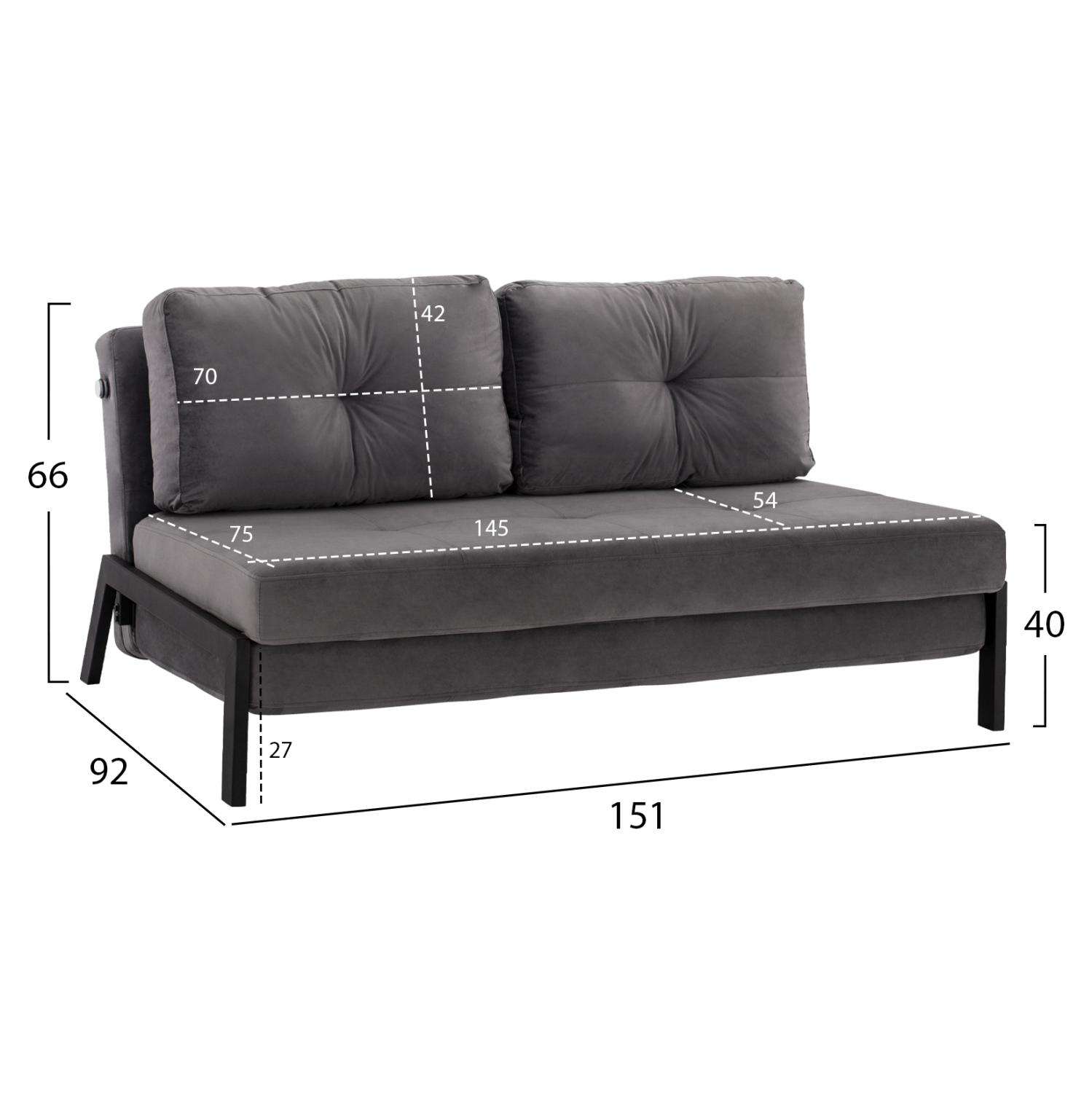 Διαστάσεις καθίσματος: 145×54-75 εκ.