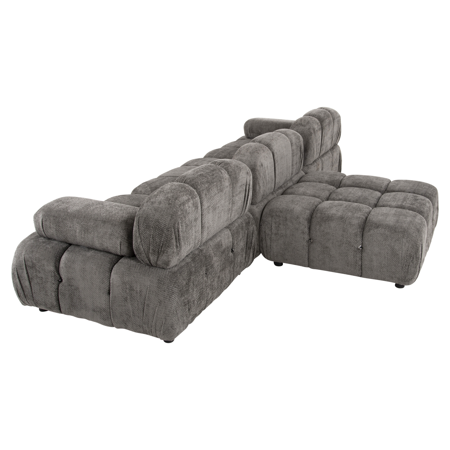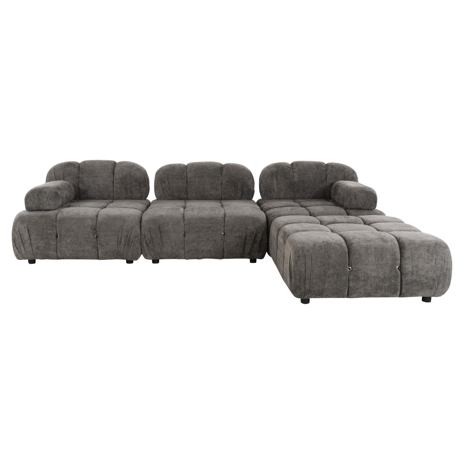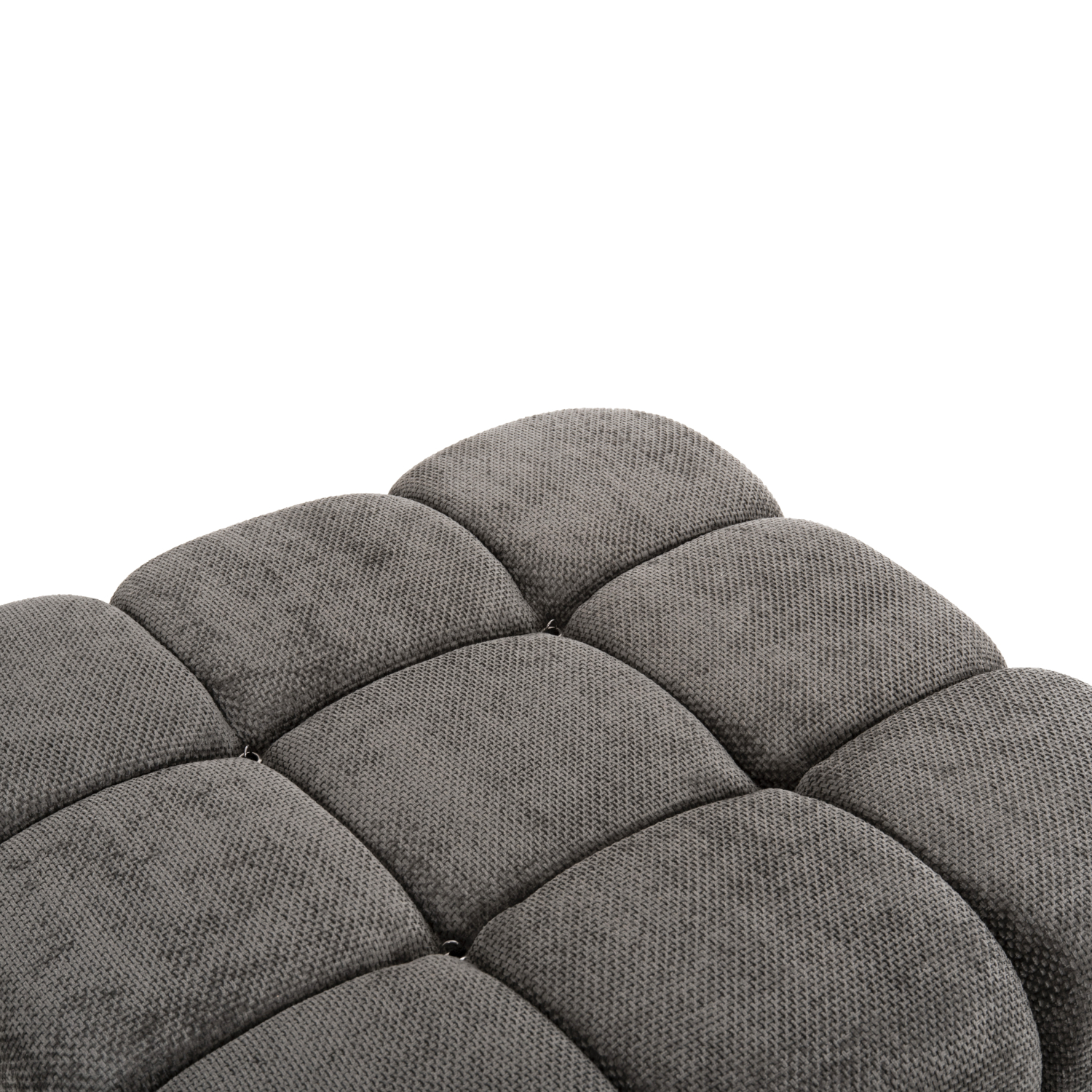 Ξεκινώντας από τα βασικά και τα προφανή, το χρώμα της εξαιρετικά ποιοτικής επένδυσης του καναπέ είναι ΓΚΡΙ. Η τεχνοτροπία της επένδυσης είναι καπιτονέ σε όλο το εύρος του καναπέ. Αποτελείται από 4 ξεχωριστά τετράγωνα κομμάτια, τα οποία μπορείτε να τα τοποθετήσετε όπως εσείς θέλετε! Τα 3 από τα 4 κομμάτια διαθέτουν χαμηλή πλάτη, ενώ το τέταρτο μοιάζει περισσότερο με ένα μεγάλο σκαμπό. Τα 2 μακρόστενα μαξιλάρια ενώνονται στον καναπέ με «χρατς» (Velcro). Περνώντας στο κάθισμα του καναπέ, αυτό που εντυπωσιάζει είναι η κατασκευή του με pocket springs, πράγμα που απογειώνει πραγματικά την αίσθηση άνεσης που προσφέρει!