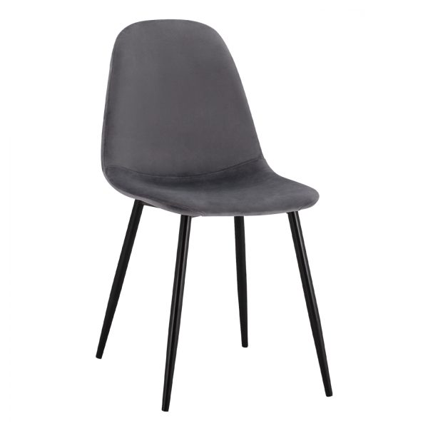 Η καρέκλα Adalyn είναι επενδυμένη με ύφασμα βελούδο σε γκρι απόχρωση και μαύρο PU στην πλάτη ενώ τα πόδια είναι μεταλλικά σε μαύρη απόχρωση για μεγαλύτερη αντοχή.