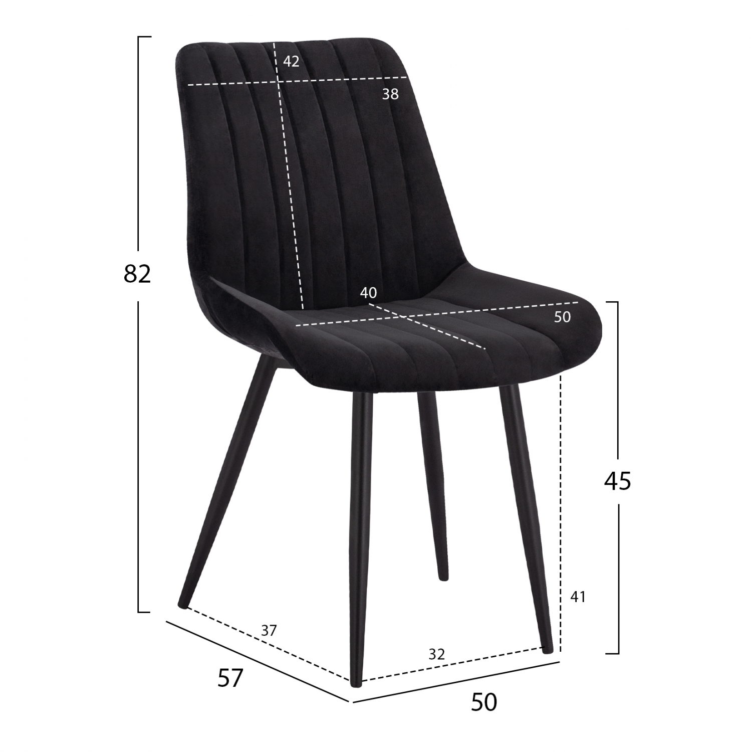 Καρέκλα Chase επενδυμένη με ύφασμα βελούδο και μεταλλικά πόδια σε μαύρη απόχρωση.