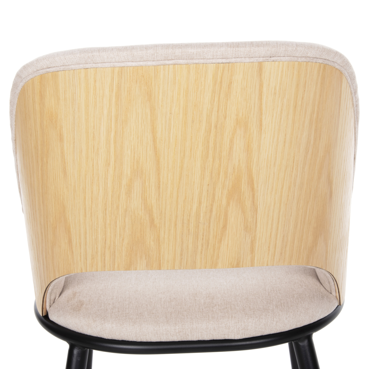 Καρέκλα DELF σε ΜΠΕΖ απόχρωση με ξύλινη πλάτη σε OAK χρώμα, και ΜΑΥΡΑ μεταλλικά πόδια. Η ξύλινη πλάτη είναι κυρτή και αναπαυτική. Μια καρέκλα που δίνει αέρα πολυτέλειας σε οποιοδήποτε χώρο. Ποιοτική και κομψή σίγουρα θα τραβήξει τα βλέμματα.