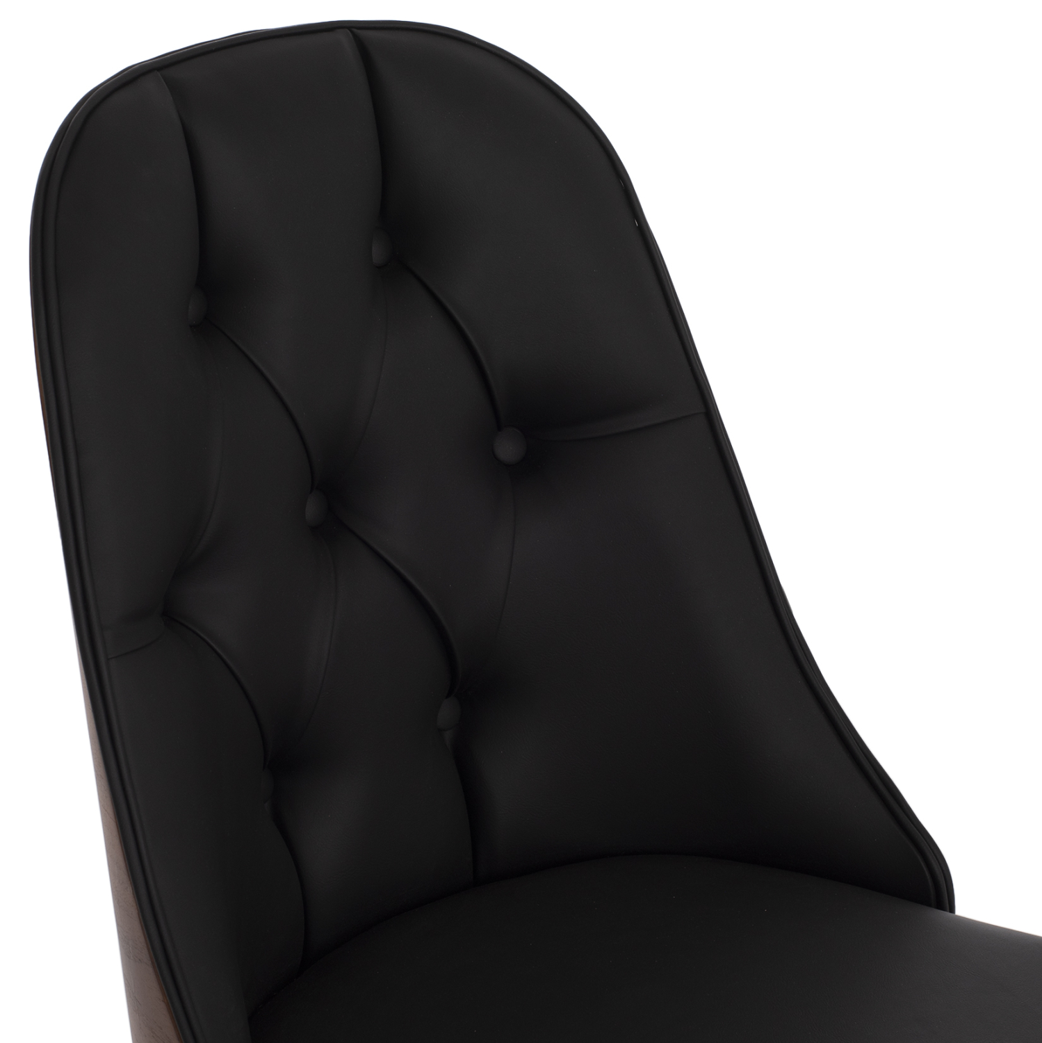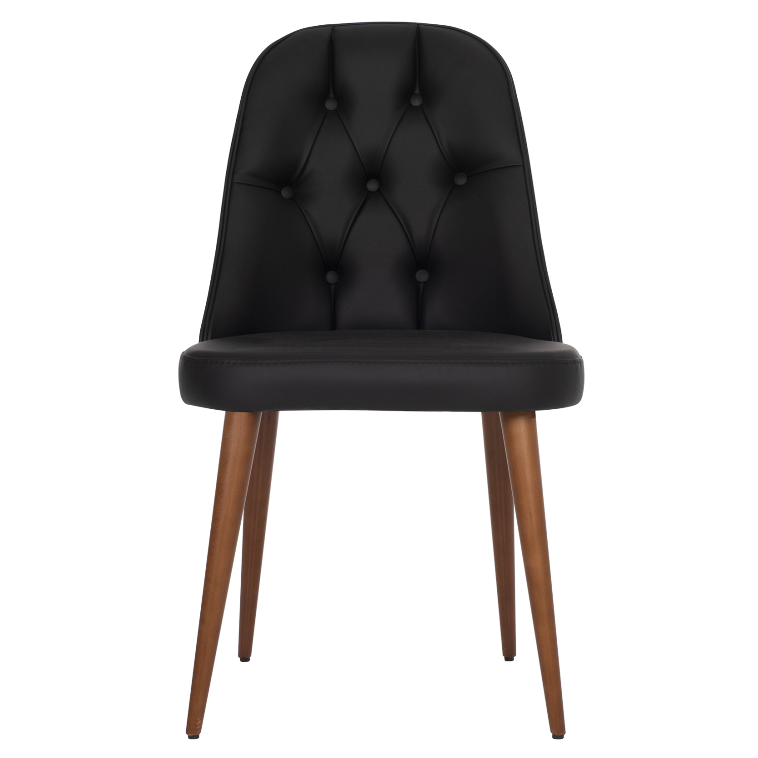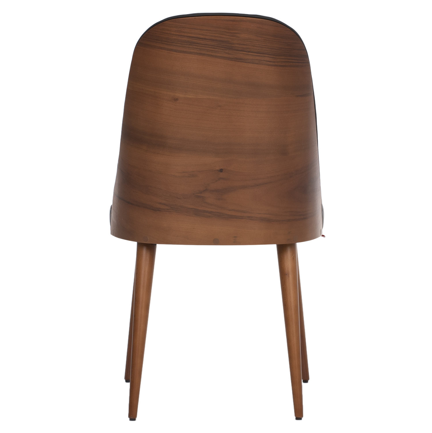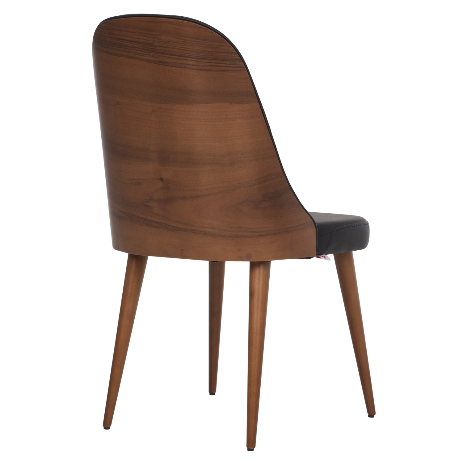 Καρέκλα ESTRELLA σε ΜΑΥΡΗ απόχρωση με ξύλινη πλάτη, και ξύλινα πόδια σε καρυδί απόχρωση. Η ξύλινη πλάτη είναι κυρτή και αναπαυτική. Μια καρέκλα που δίνει αέρα πολυτέλειας σε οποιοδήποτε επαγγελματικό χώρο. Ποιοτική και κομψή σίγουρα θα τραβήξει τα βλέμματα. Το εσωτερικό της πλάτης με τον καπιτονέ σχεδιασμό προσφέρει έναν ιδιαίτερο χαρακτήρα στην καρέκλα και επιβεβαιώνει την εντύπωση της πολυτέλειας που σου δίνει με την πρώτη κιόλας ματιά.