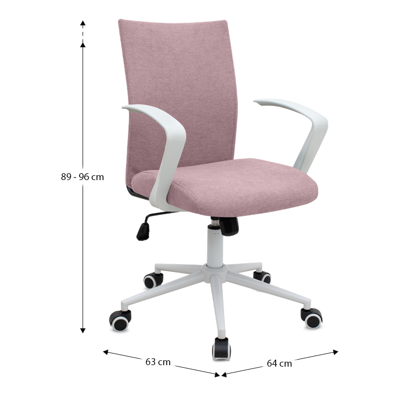 Καρέκλα γραφείου Berlin Megapap υφασμάτινη χρώμα ροζ – λευκό 64x63x89/96εκ.