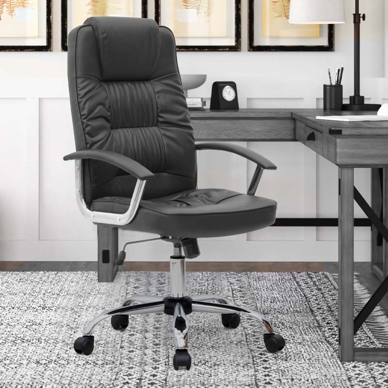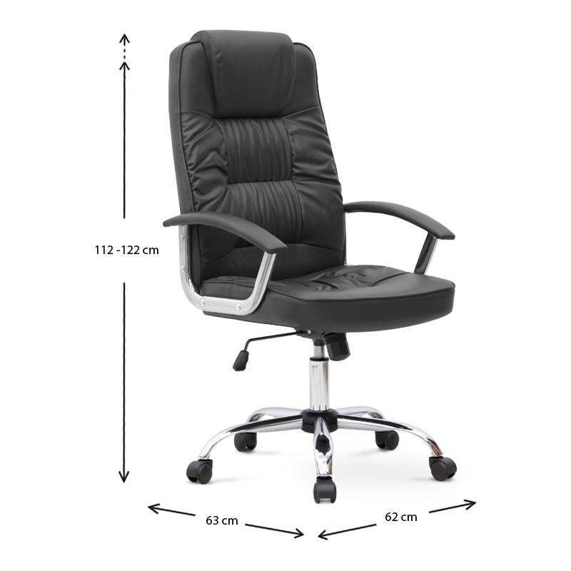 Καρέκλα γραφείου διευθυντική Arial Megapap από τεχνόδερμα χρώμα μαύρο 62x63x112/122εκ.