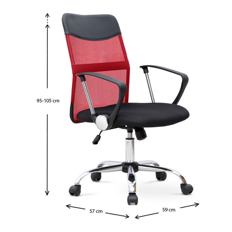 Καρέκλα γραφείου Franco Megapap με ύφασμα Mesh χρώμα κόκκινο – μαύρο 59x57x95/105εκ.