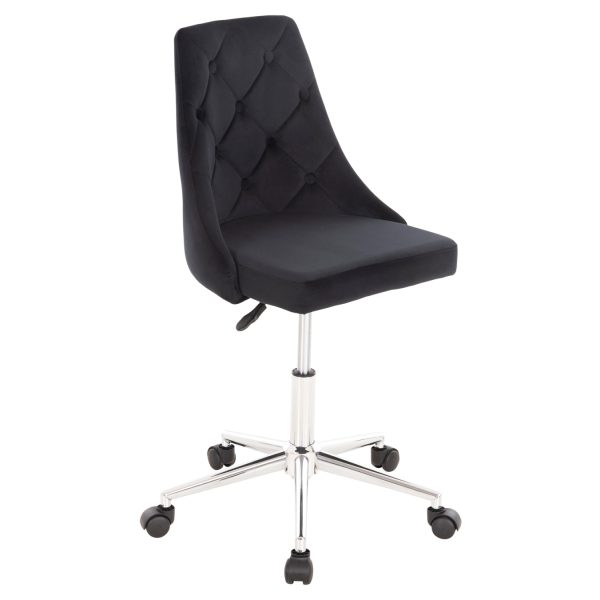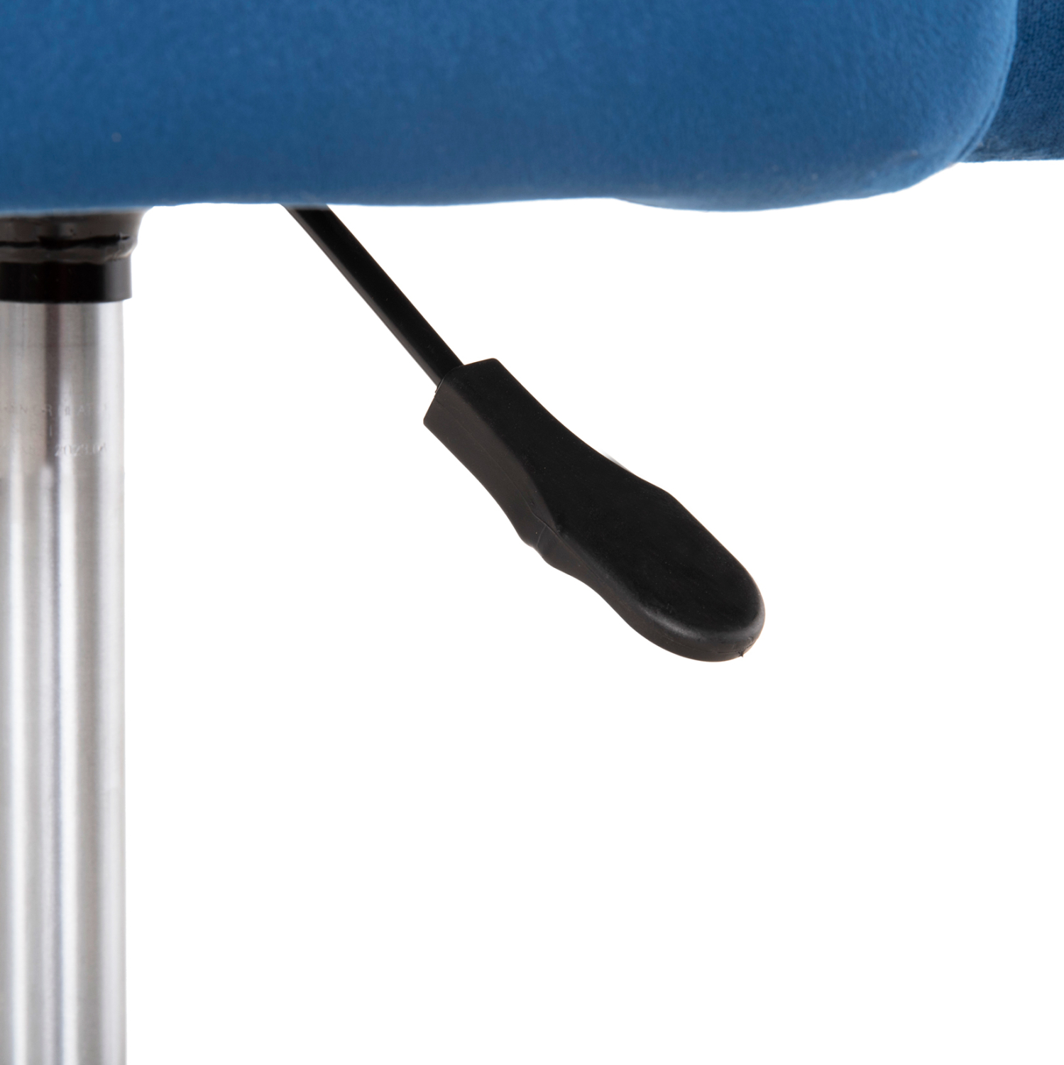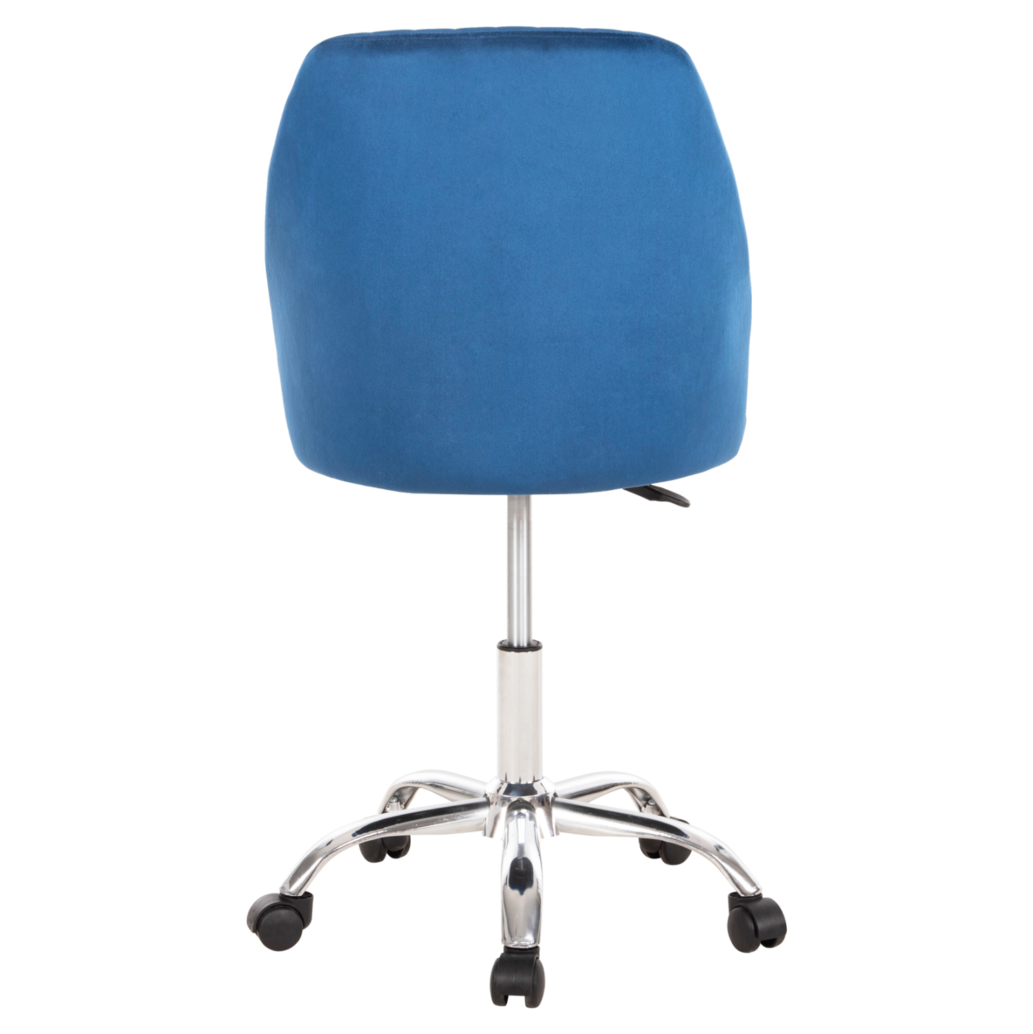 H HOLLIS είναι μια όμορφη καρέκλα γραφείου χωρίς μπράτσα. Η πλάτη είναι μεσαίου ύψους με καπιτονέ τεχνοτροπία και κυρτό σχεδιασμό για άνεση κατά την χρήση και υποστηρίζει ολόκληρο τον κορμό σας, ενώ είναι επενδυμένη με υψηλής ποιότητας βελούδινο ύφασμα σε ΜΠΛΕ χρώμα, όπως επίσης και το φαρδύ και αναπαυτικό κάθισμα. Η βάση είναι χρωμιωμένη με 5 ακτίνες και μαύρα ροδάκια.
