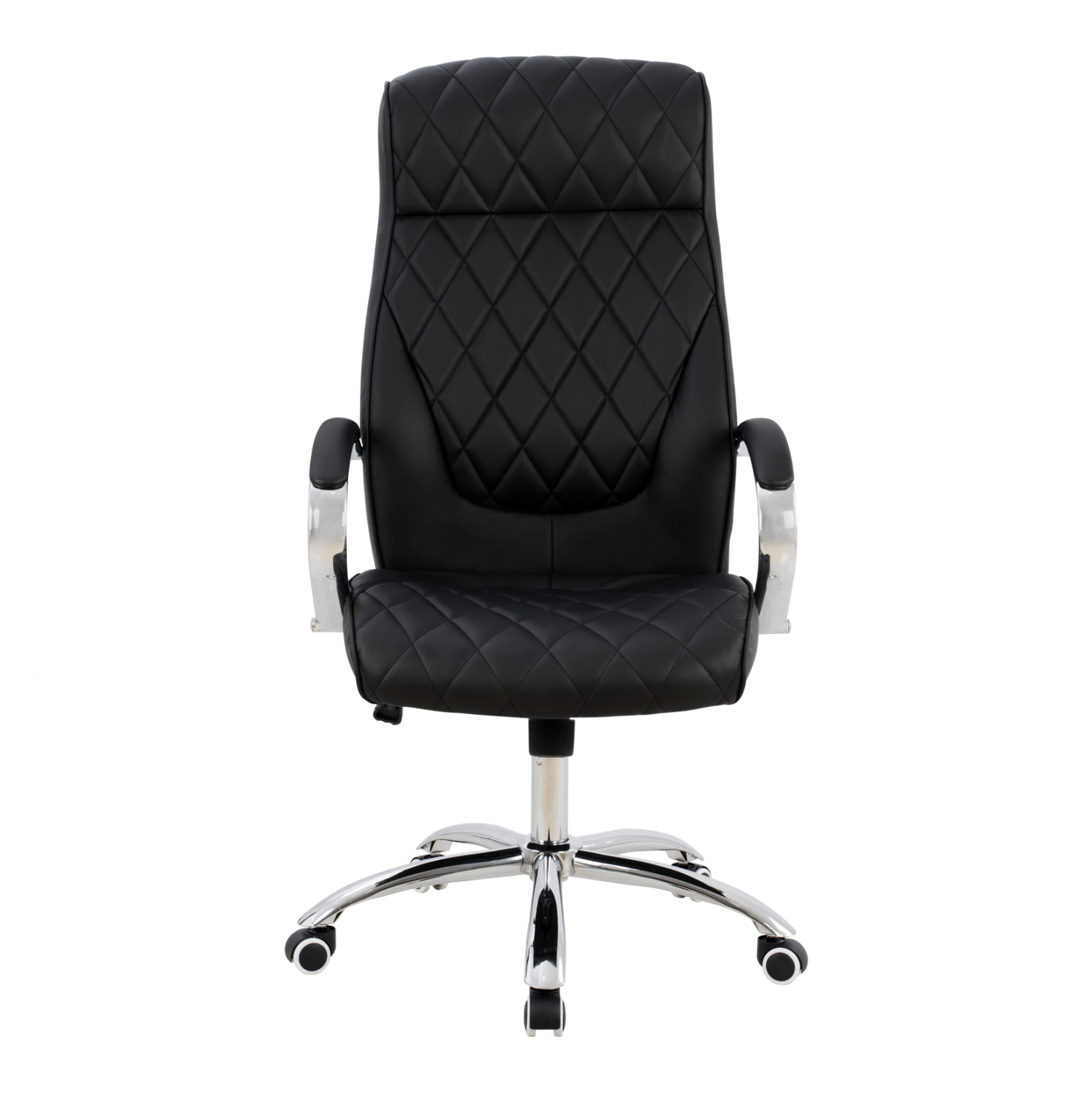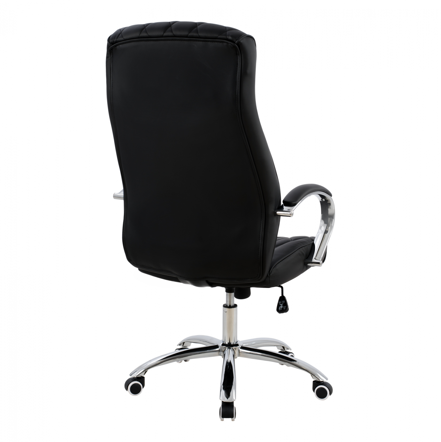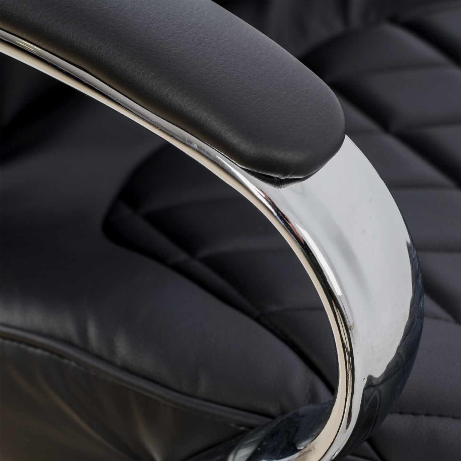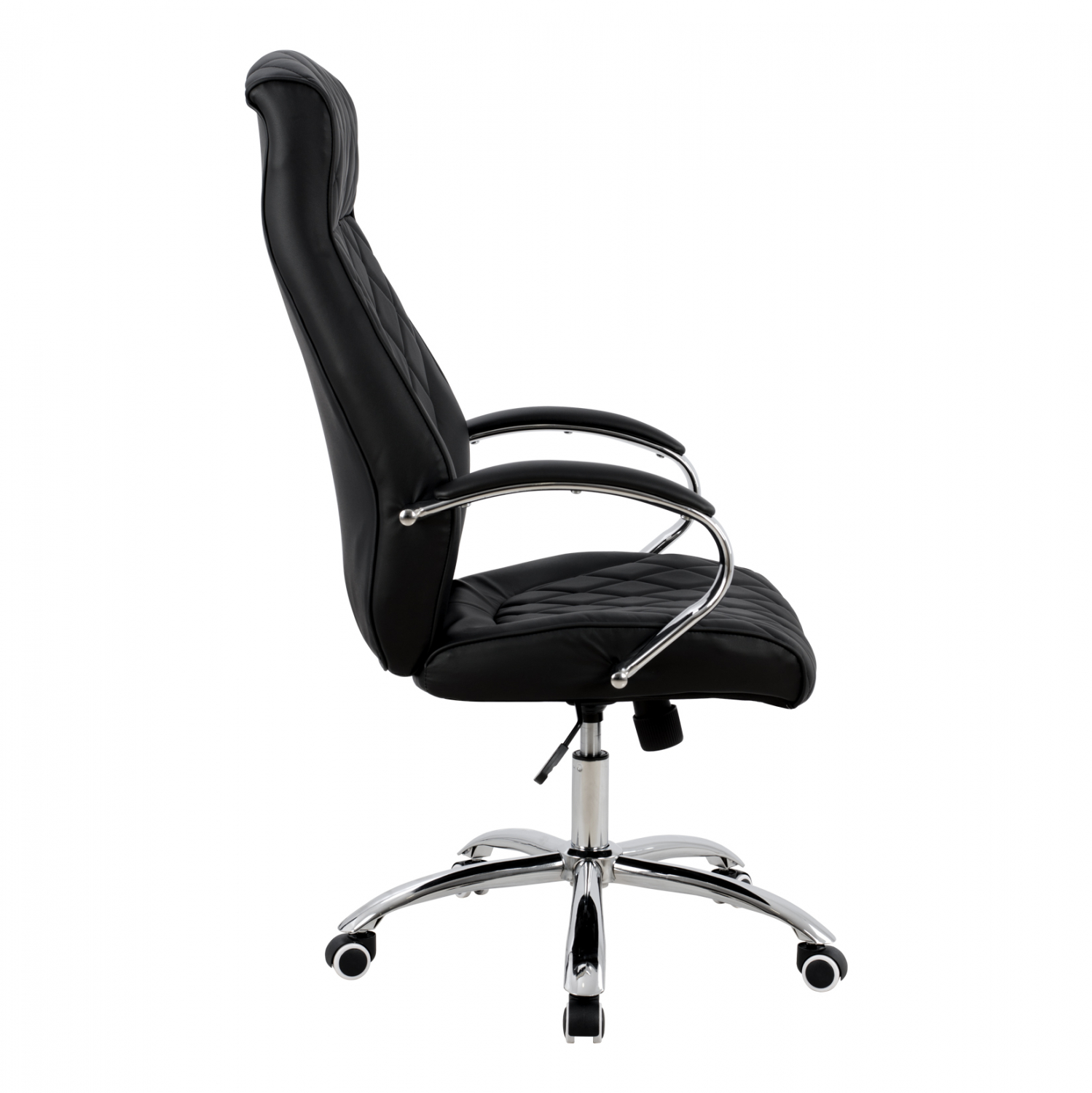 Καρέκλα γραφείου διευθυντική με μπράτσα και ανάκλιση από υψηλής ποιότητας PU σε μαύρο χρώμα και μοναδικό design.