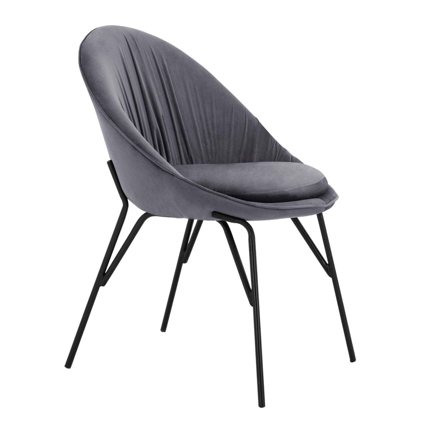 Η καρέκλα KELSEY είναι επενδυμένη με ύφασμα βελούδο σε γκρι απόχρωση με μεταλλικό μαύρο σκελετό.