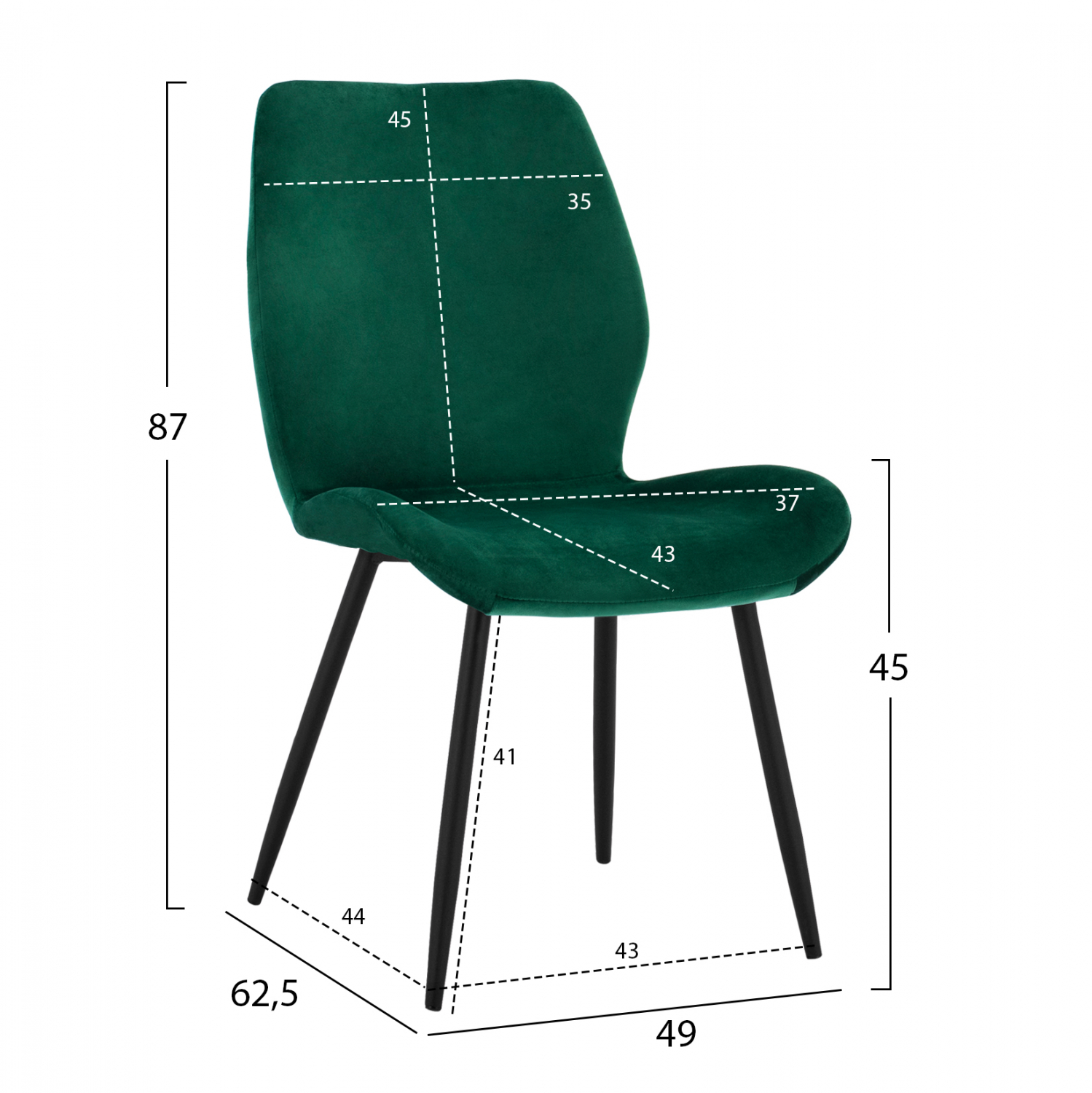 Η καρέκλα Klay είναι κατασκευασμένη από μεταλλικό μαύρο σκελετό και επενδυμένη με βελούδινο ύφασμα σε κυπαρισσί απόχρωση.