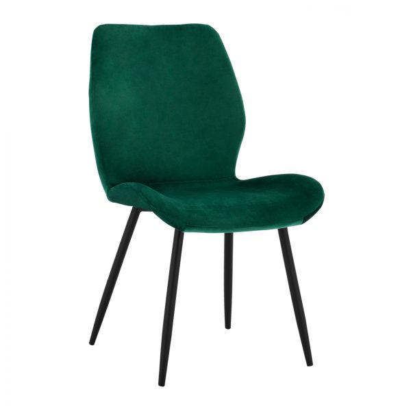 Η καρέκλα Klay είναι κατασκευασμένη από μεταλλικό μαύρο σκελετό και επενδυμένη με βελούδινο ύφασμα σε απόχρωση σάπιου μήλου.