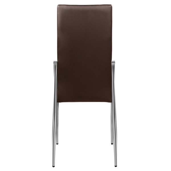 Καρέκλα κουζίνας από μεταλλικό σκελετό χρωμίου και επένδυση από δερματίνη σε καφέ χρώμα.