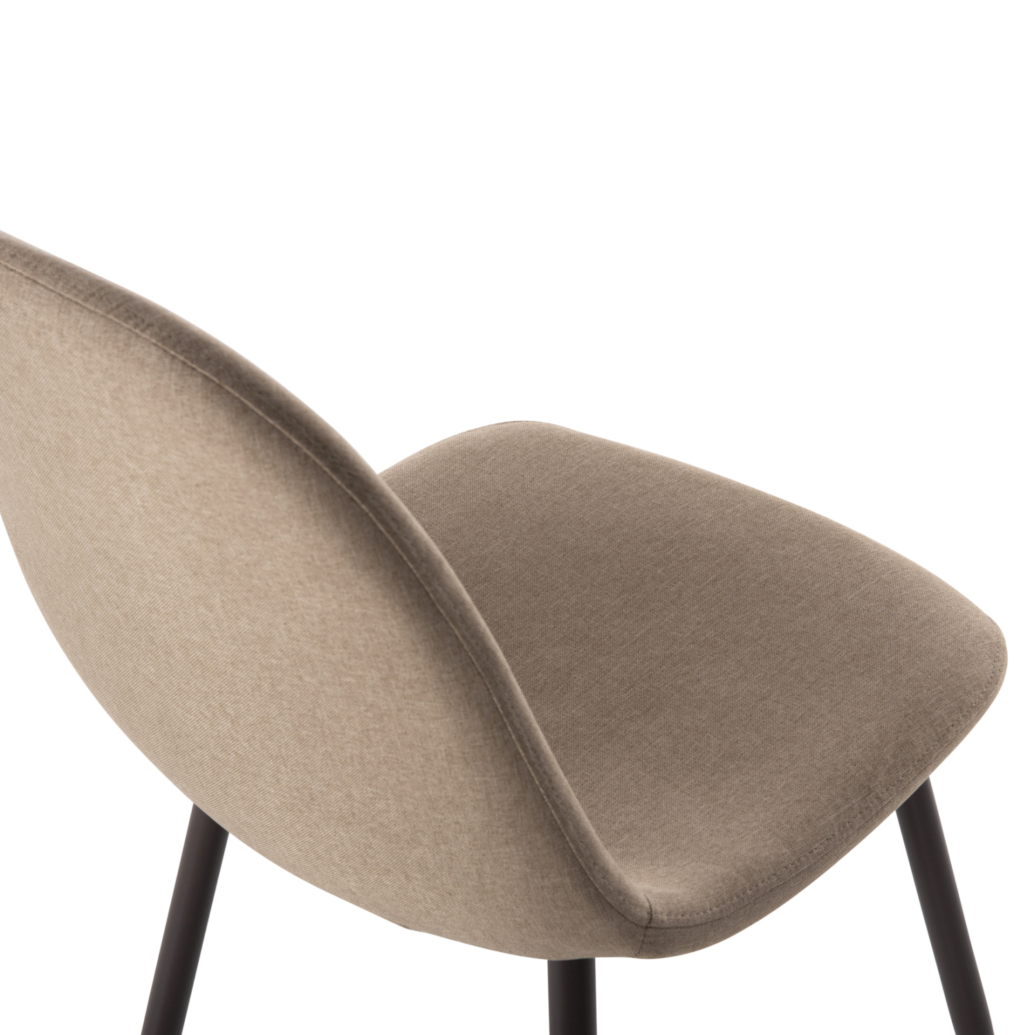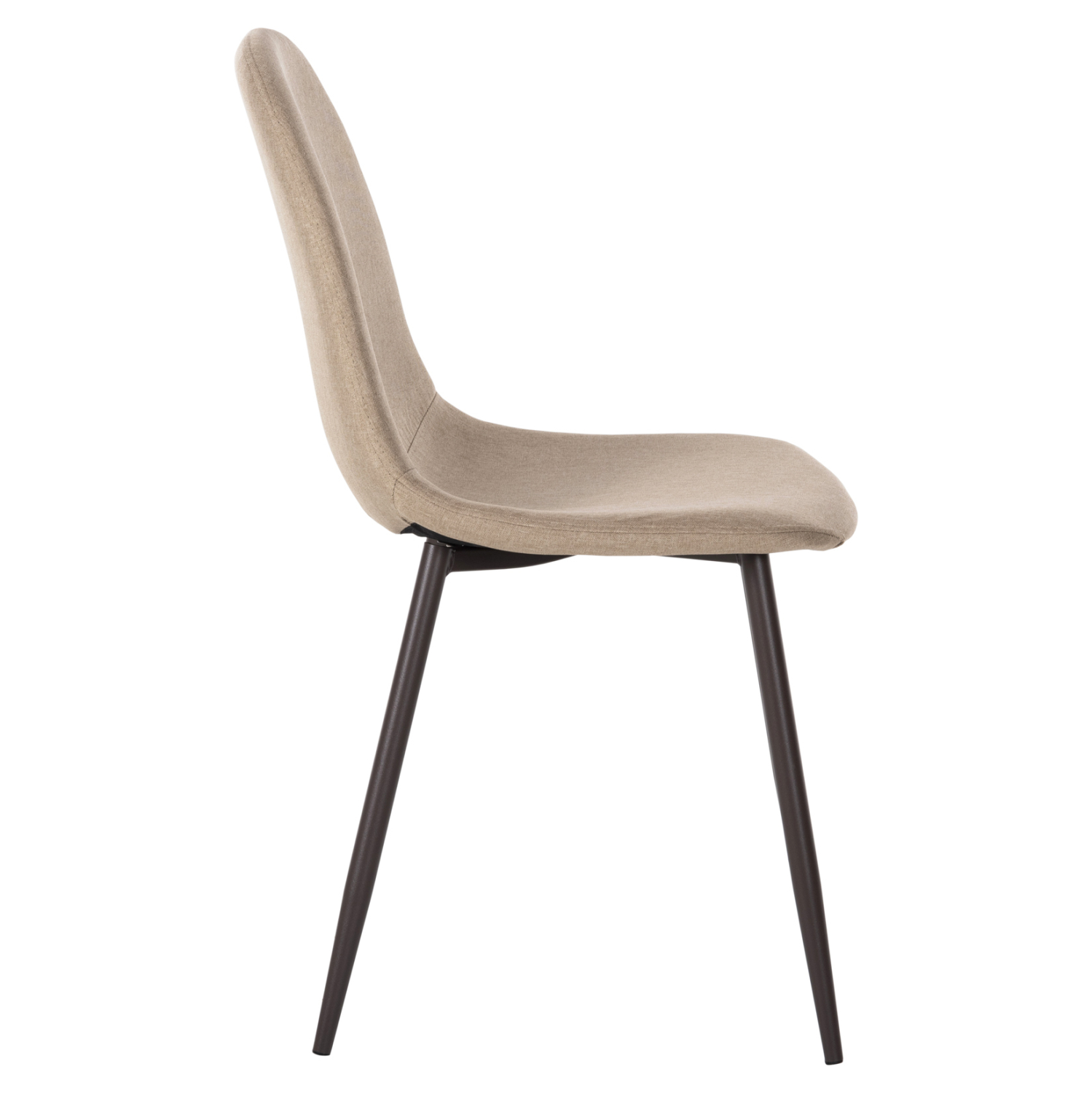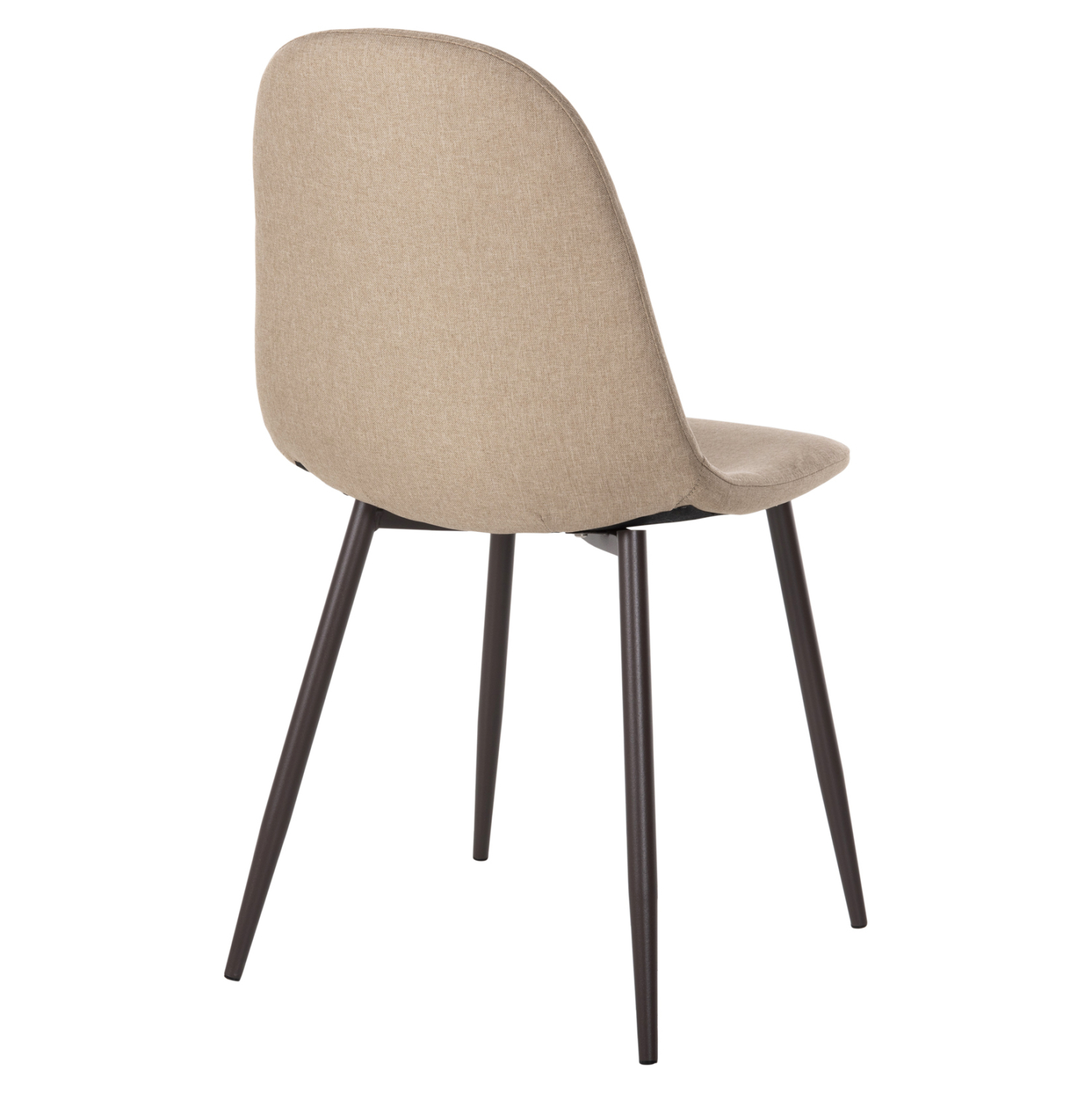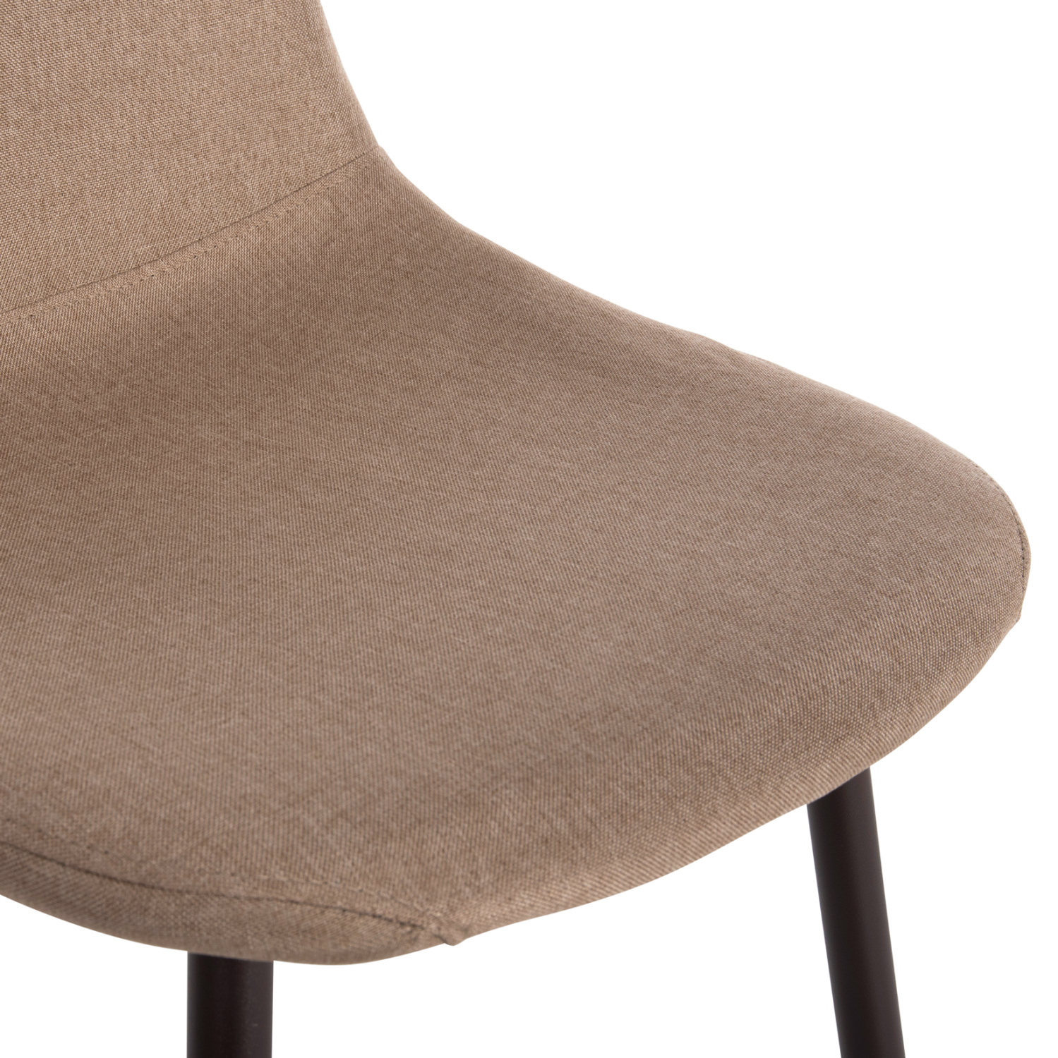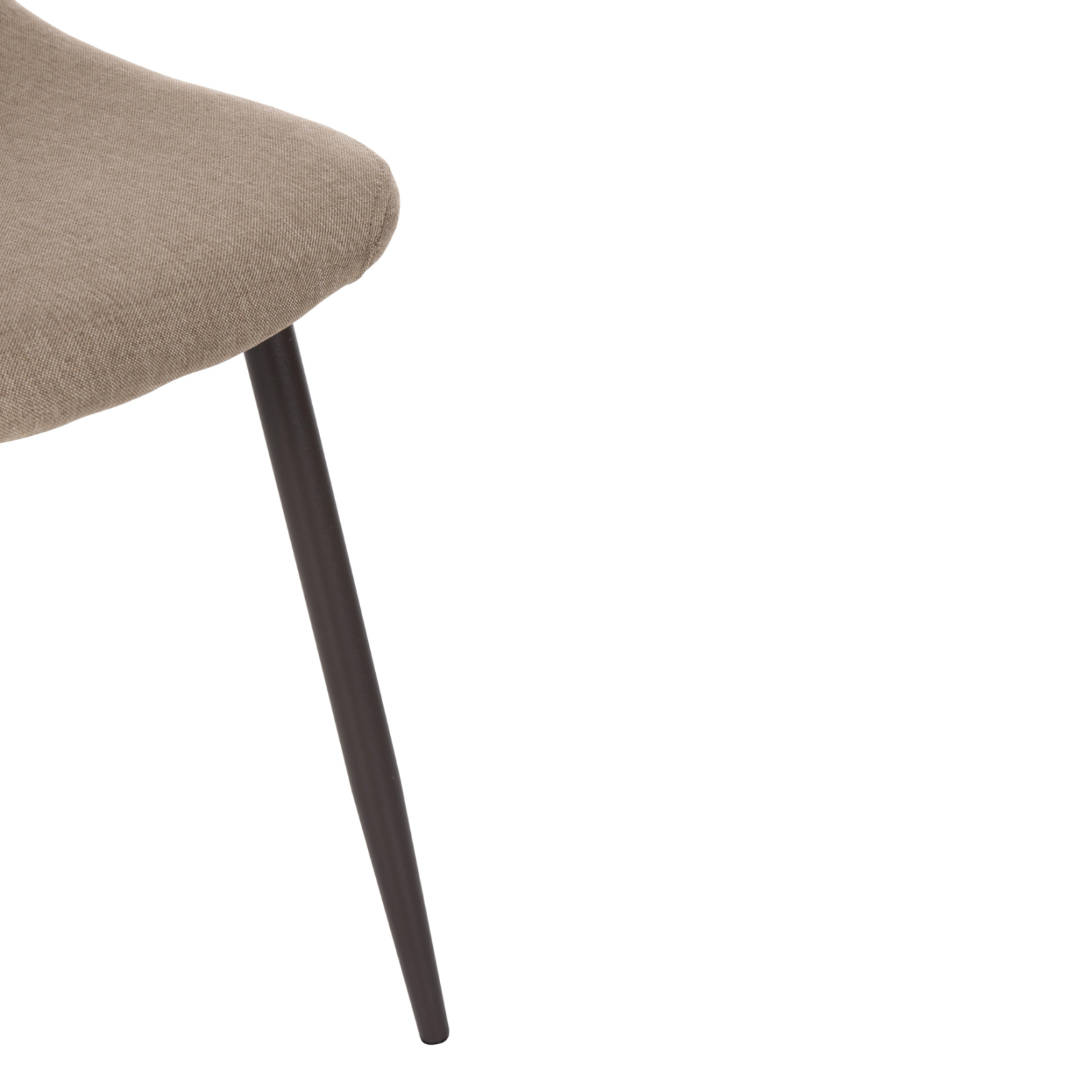 Το κάθισμα της καρέκλας είναι επενδυμένο με ύφασμα σε μπεζ απόχρωση. Τα πόδια είναι μεταλλικά για μεγαλύτερη αντοχή.