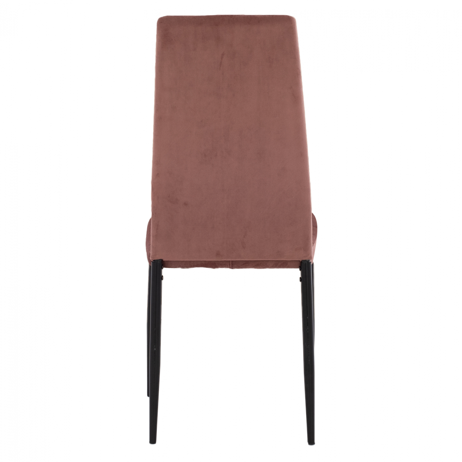 Καρέκλα κουζίνας από σκελετό μεταλλικό K/D μαύρου χρώματος και επένδυση από βελούδινο ύφασμα σε απόχρωση σάπιο μήλο.
