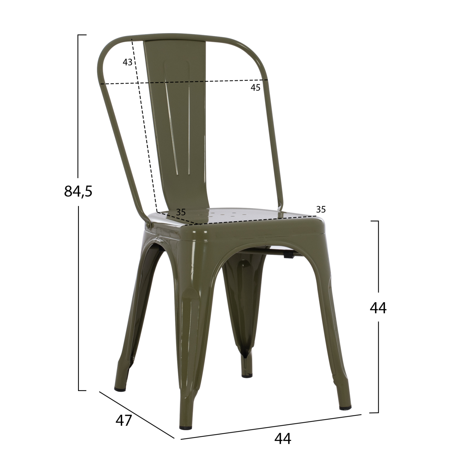 Καρέκλα τραπεζαρίας μεταλλική MELITA-PRO σε απόχρωση DARK OLIVE GREEN. Σε μοντέρνο και λιτό design INDUSTRIAL που είναι η τελευταία τάση της αγοράς.