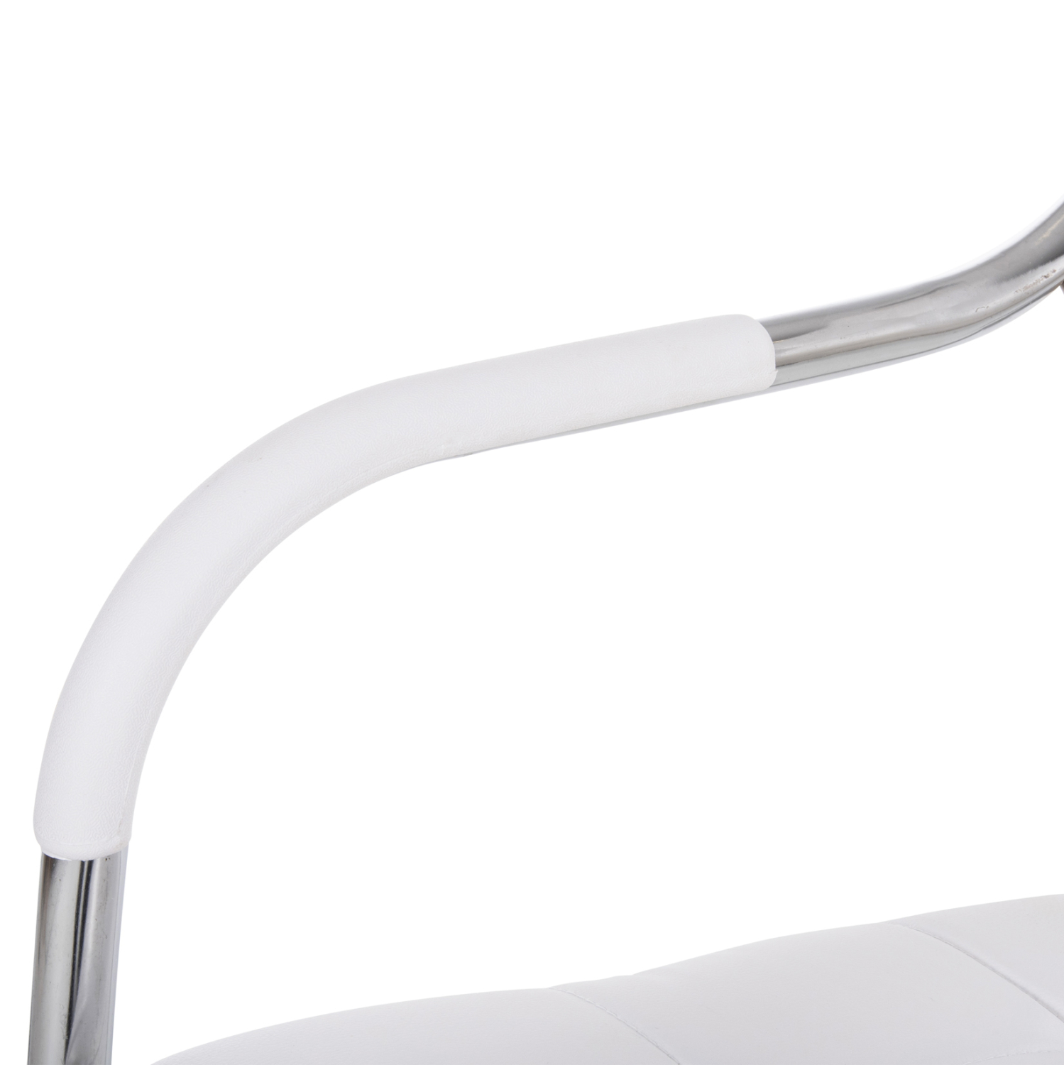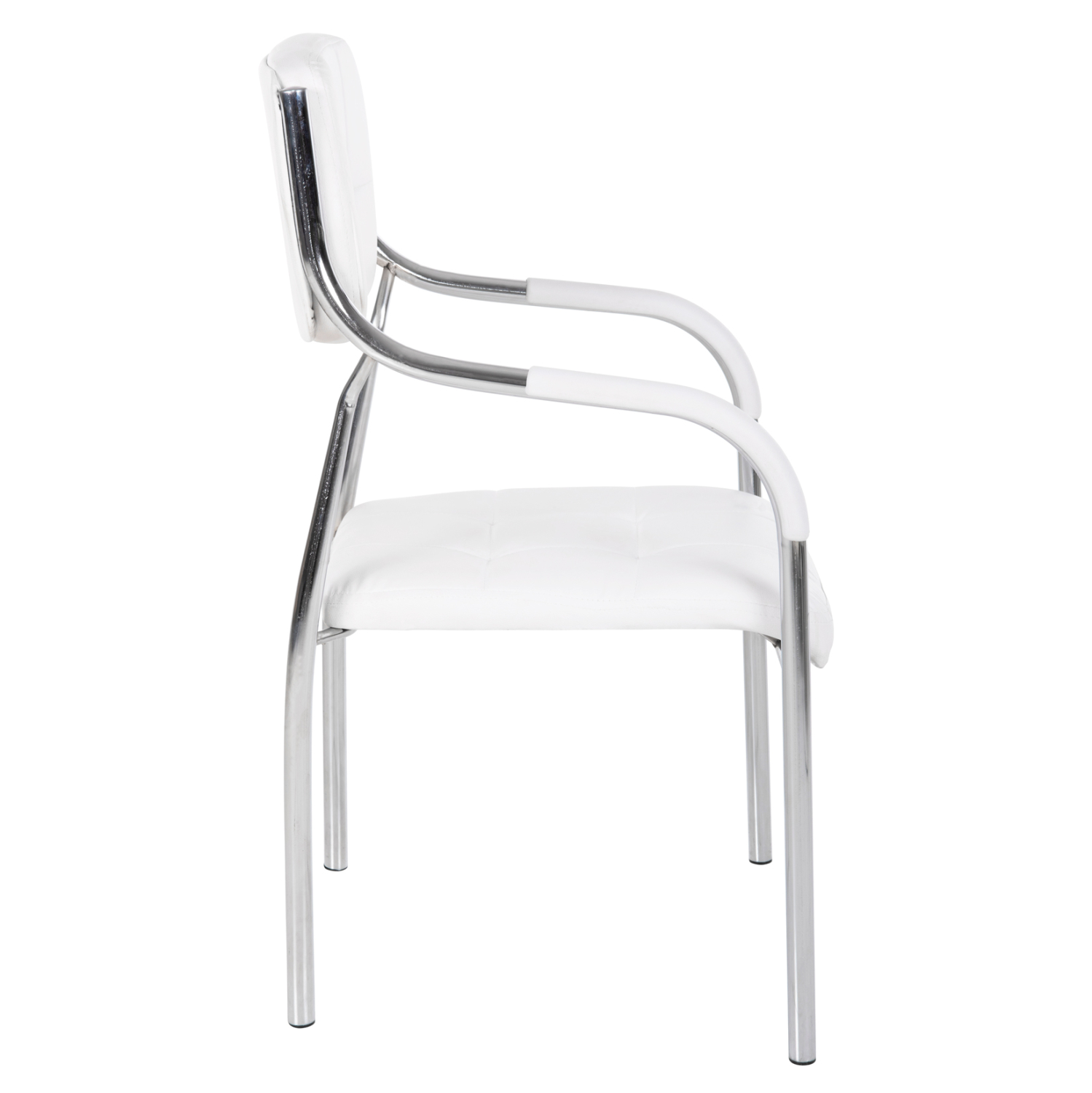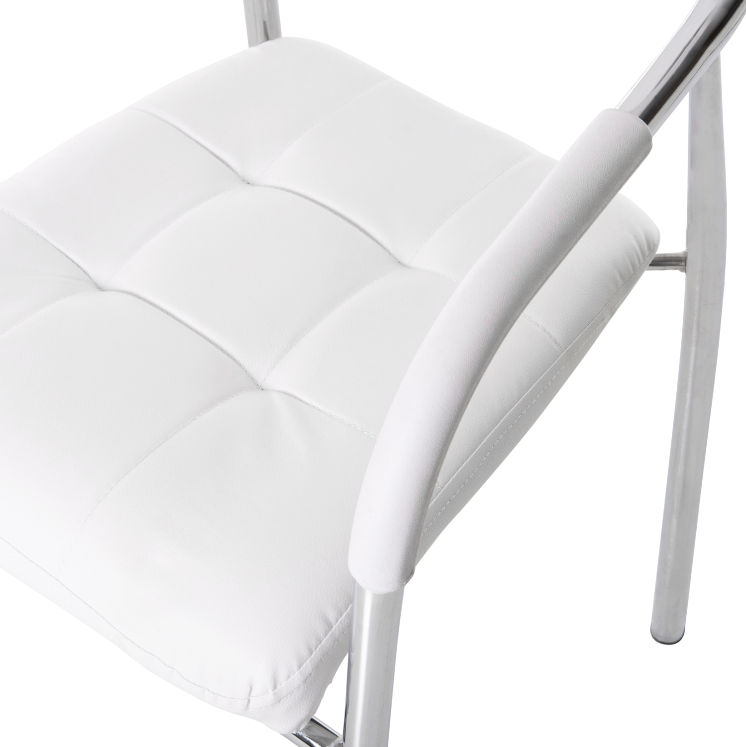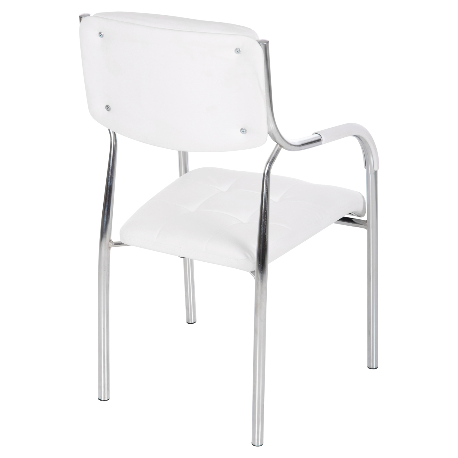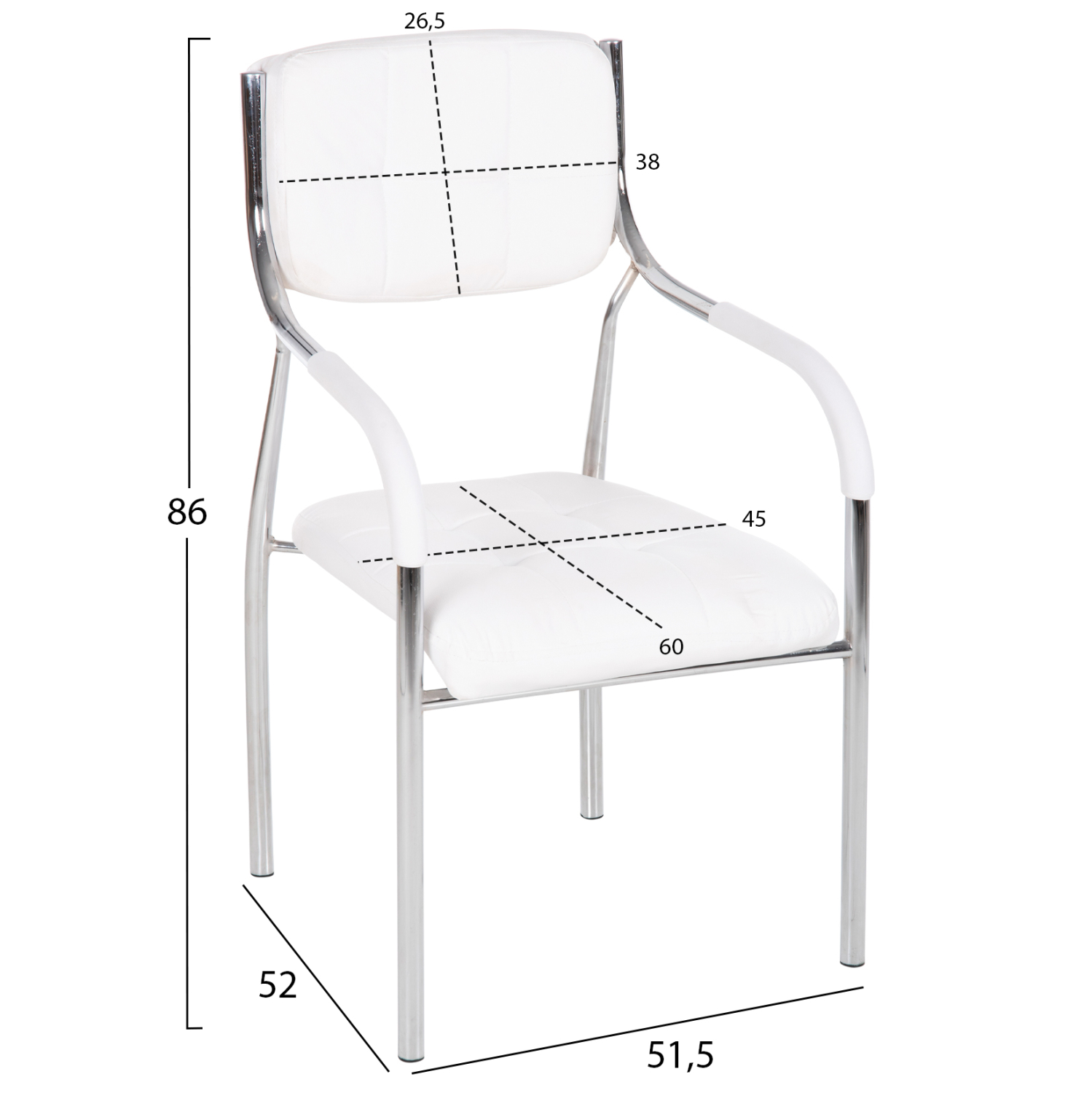 Κάντε τους επισκέπτες σας να αισθανθούν άνετα με την καρέκλα QUANDA. Πρόκειται για μια καρέκλα γραφείου συνεργασίας σε λευκό χρώμα και λιτό σχεδιασμό αλλά σίγουρα όμορφο. Είναι χρωμιωμένη ενώ το κάθισμα και η πλάτη είναι ανεξάρτητα μεταξύ τους. Το μπροστά μέρος του καθίσματος έχει μια ελαφριά κλίση για να είναι πιο ευχάριστη και άνετη στην χρήση, ενώ η επένδυσή της είναι σε στυλ τετραγωνισμένου καπιτονέ, τόσο στο κάθισμα, όσο και στην πλάτη. Ο σκελετός της καρέκλας έχει όμορφες καμπύλες ενώ τα μπράτσα έχουν επένδυση πολυκαρβονική για πιο ευχάριστη υφή.