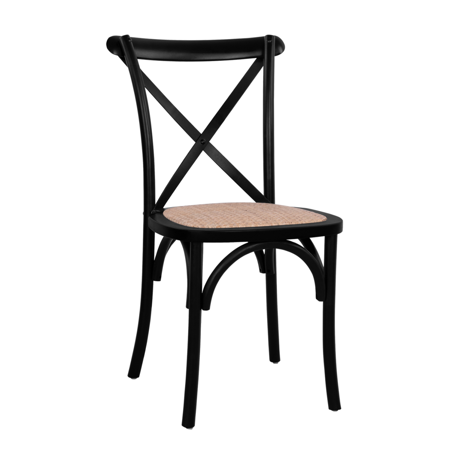 Η καρέκλα είναι κατασκευασμένη από υψηλής αντοχής ξύλο οξιάς σε μαύρο ματ απόχρωση, ενώ το κάθισμα της καρέκλας είναι από ψάθα με χειροποίητη πλέξη.