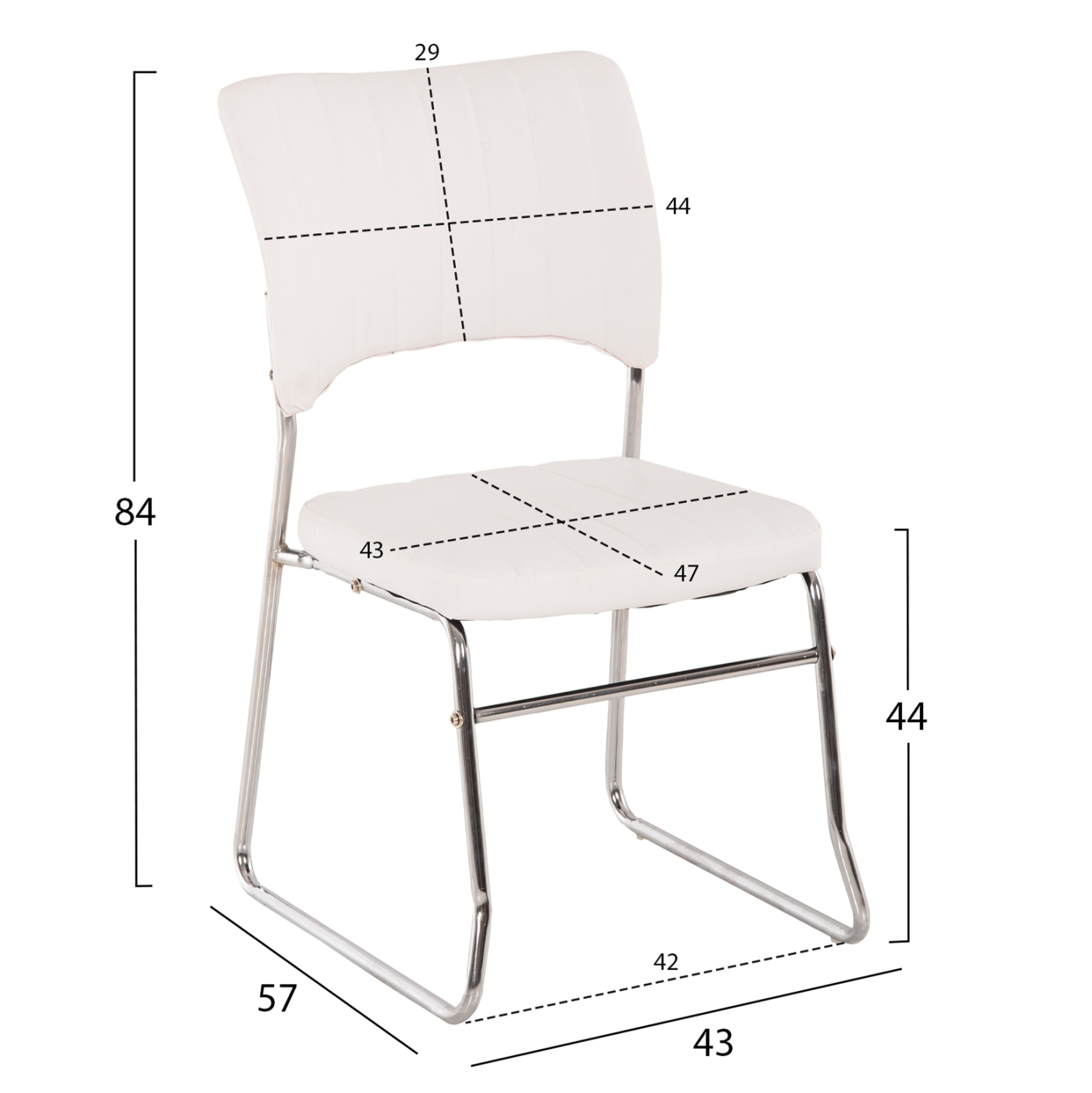 Καρέκλα επισκέπτου, από λευκό PU και σκελετό από χρωμιομένο ατσάλι για ύψιστη ασφάλεια, σταθερότητα και αντοχή.
