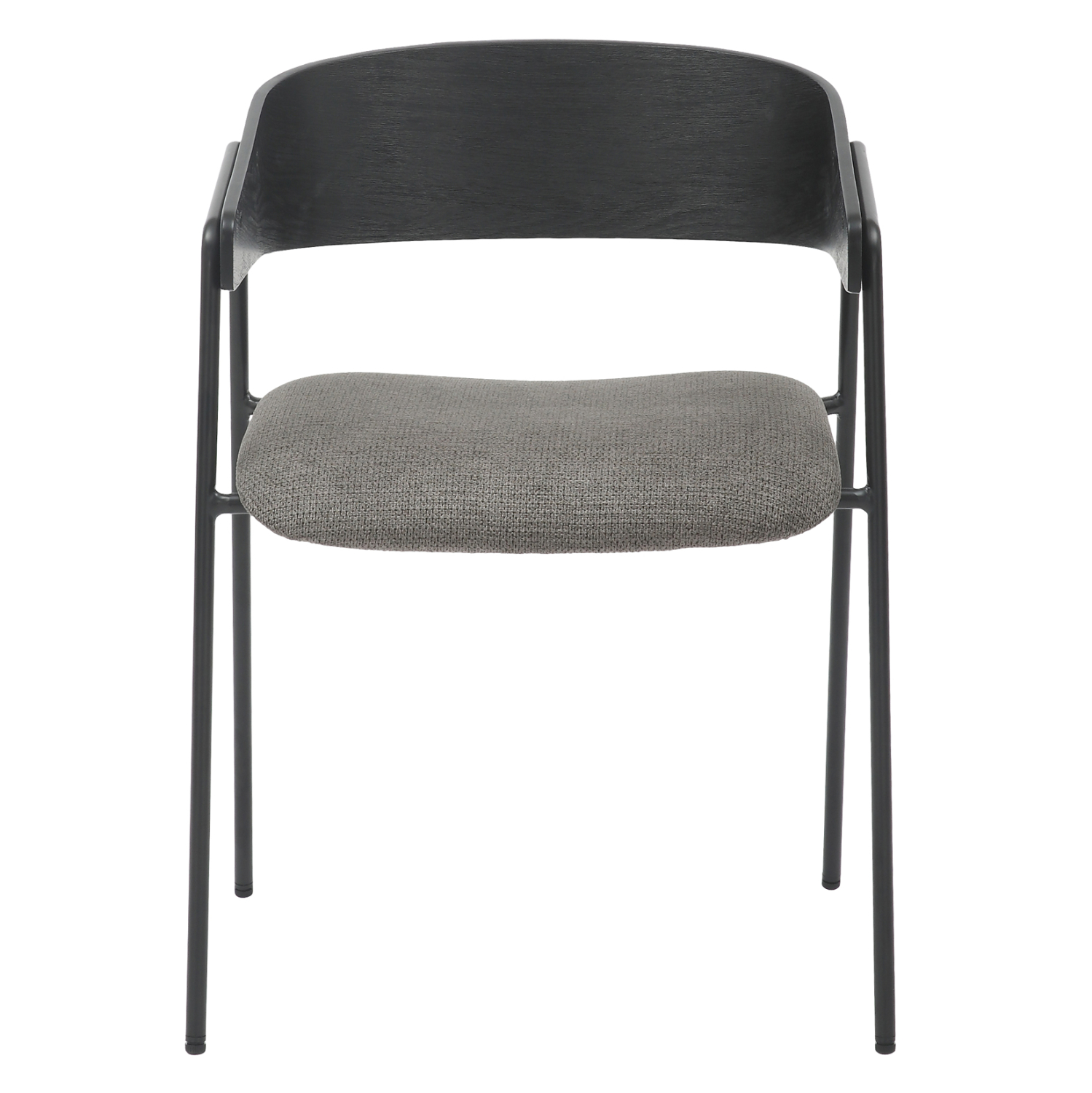Η καρέκλα τραπεζαρίας KORIN με τον λιτό σχεδιασμό της ενώνει αρμονικά τον μεταλλικό σκελετό σε ΜΑΥΡΟ χρώμα, με το υψηλής ποιότητας ΓΚΡΙ ύφασμα του καθίσματος και την ξύλινη πλάτη σε χρωματισμό brushed ΜΑΥΡΟΥ. Συνδυάστε την με ένα ωραίο τραπέζι και δημιουργήστε μια όμορφη και ποιοτική τραπεζαρία.